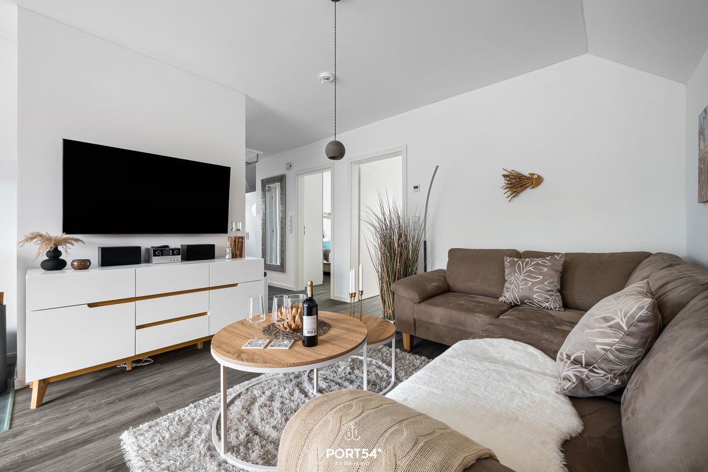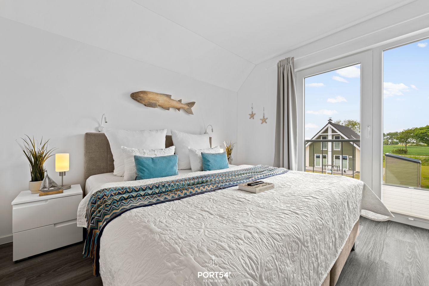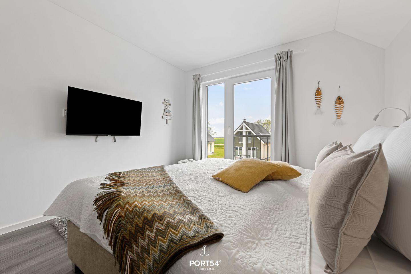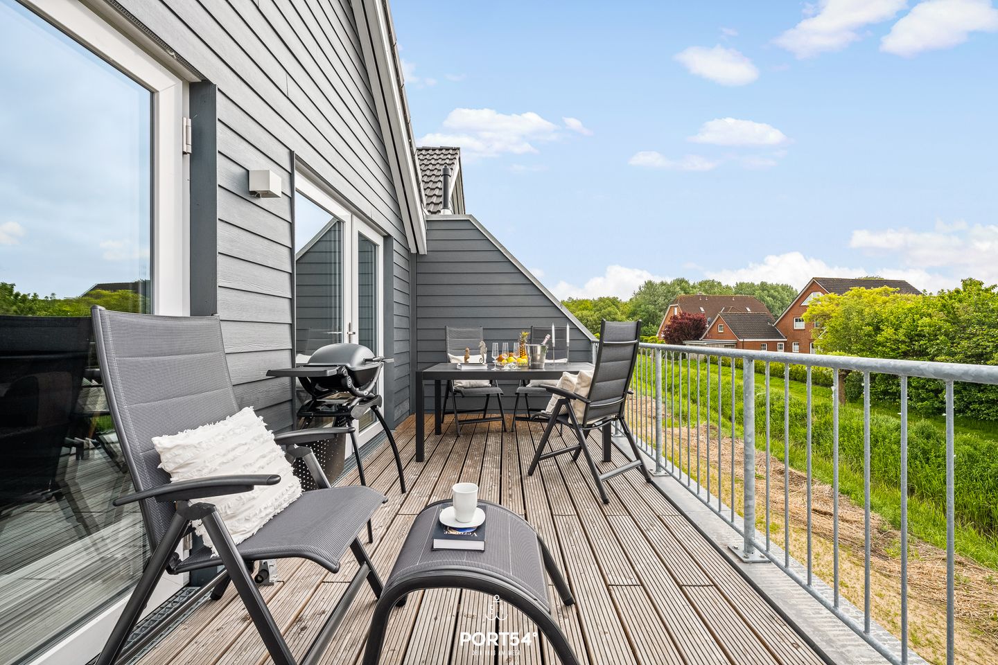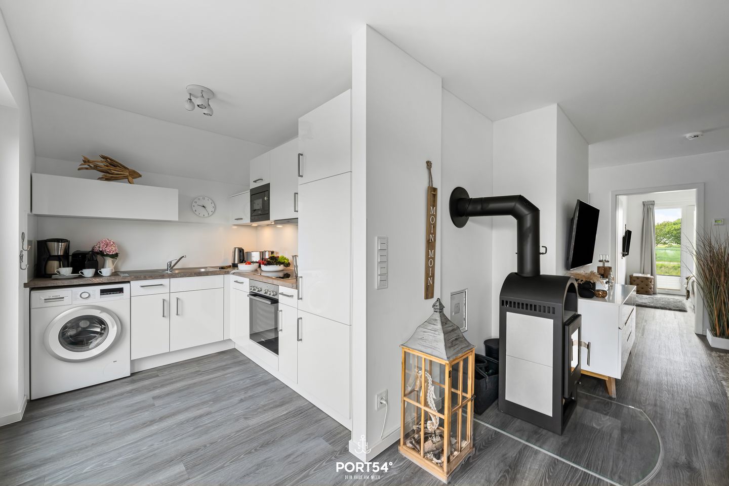 Willkommen im "Dock 40" in Büsum! Die Ferienwohnung bietet auf 80m² einen offenen Wohn- und Essbereich mit Küche, zwei Schlafzimmer, ein Badezimmer und einen Balkon. In dem gemütlichen Wohnbereich können Sie es sich auf dem Sofa vor dem Smart-TV mit Magenta-TV bequem machen oder auch spannende Spieleabende veranstalten. Der Kamin sorgt für eine mollige Wärme und eine heimelige Atmosphäre. In der vollausgestatteten Küche können Sie leckere Gerichte zaubern oder Kuchen backen. Für unsere kleinen Gäste steht ein Hochstuhl und ein Kinderbett zur Verfügung. Das eine der beiden Schlafzimmer ist mit einem bequemen Doppelboxspringbett (180x200cm) ausgestattet und das andere bietet zwei, bei Bedarf zusammenschiebbare, Einzelboxspringbetten (je 90x200cm). Für erholsamen Schlaf sind Verdunkelungsmöglichkeiten sowie Insektengitter vorhanden. Beide Zimmer verfügen außerdem über Smart-TV´s mit Magenta TV. Im Badezimmer finden Sie neben einer ebenerdigen Dusche und einem Kosmetikspiegel auch einen Föhn und einen Handtuchtrockner vor. Und das absolute Highlight: eine Infrarotsauna! Erholung pur nach langen Strandspaziergängen oder auch einfach um dem Alltagsstress zu entfliehen und mal so richtig entspannen zu können. Über die Wohn- und Essbereich gelangen Sie auf den möblierten Balkon mit großem Sonnenschirm, wo Sie Ihren Morgenkaffee genießen können. An lauen Sommerabenden können Sie auf dem Weber-Elektrogrill schmackhafte Köstlichkeiten zubereiten. In dem abschließbaren Fahrradschuppen können mitgebrachte oder ausgeliehene Fahrräder (Lademöglichkeit für E-Bikes vorhanden) untergestellt werden. Direkt an der Wohnung befindet sich ein kostenfreier Parkplatz, hier ist eine E-Ladesäule ab Frühjahr 2024 verfügbar. Ihre Fellnase ist natürlich auch herzlich Willkommen.
