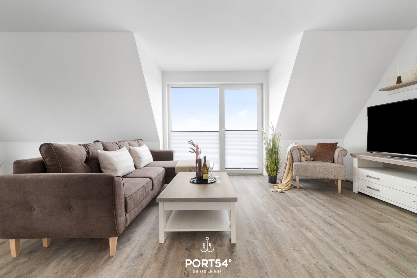 In gehobener und exklusiver Holzständerwerk-Bauweise erwartet Sie die im Dachgeschoss und Spitzboden gelegene Ferienwohnung "Küste 3" auf etwa 85m². Der lichtdurchflutete Wohnbereich ist mit einer gemütlichen Wohnlandschaft inklusive Schlaffunktion (250x160cm) und einem Flachbildfernseher ausgestattet. Die angrenzende Küche ist offen gestaltet und bietet alle Annehmlichkeiten, die für einen geselligen Kochabend benötigt