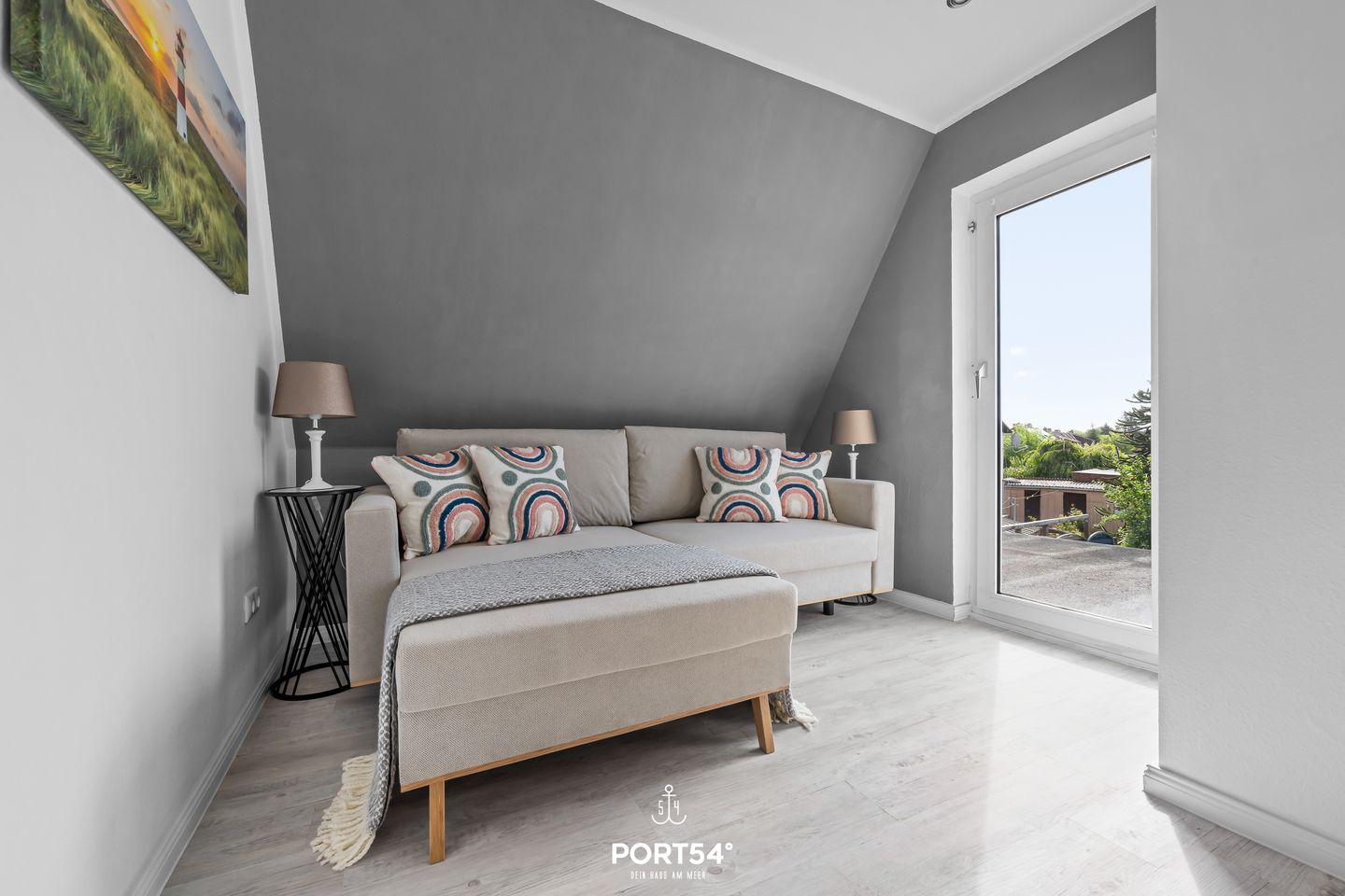 Insgesamt stehen drei Schlafzimmer zur Verfügung: Zwei davon sind mit komfortablen Doppelbetten ausgestattet, das dritte verfügt über eine hochwertige Schlafcouch, die sich ebenfalls in ein bequemes Doppelbett verwandeln lässt.