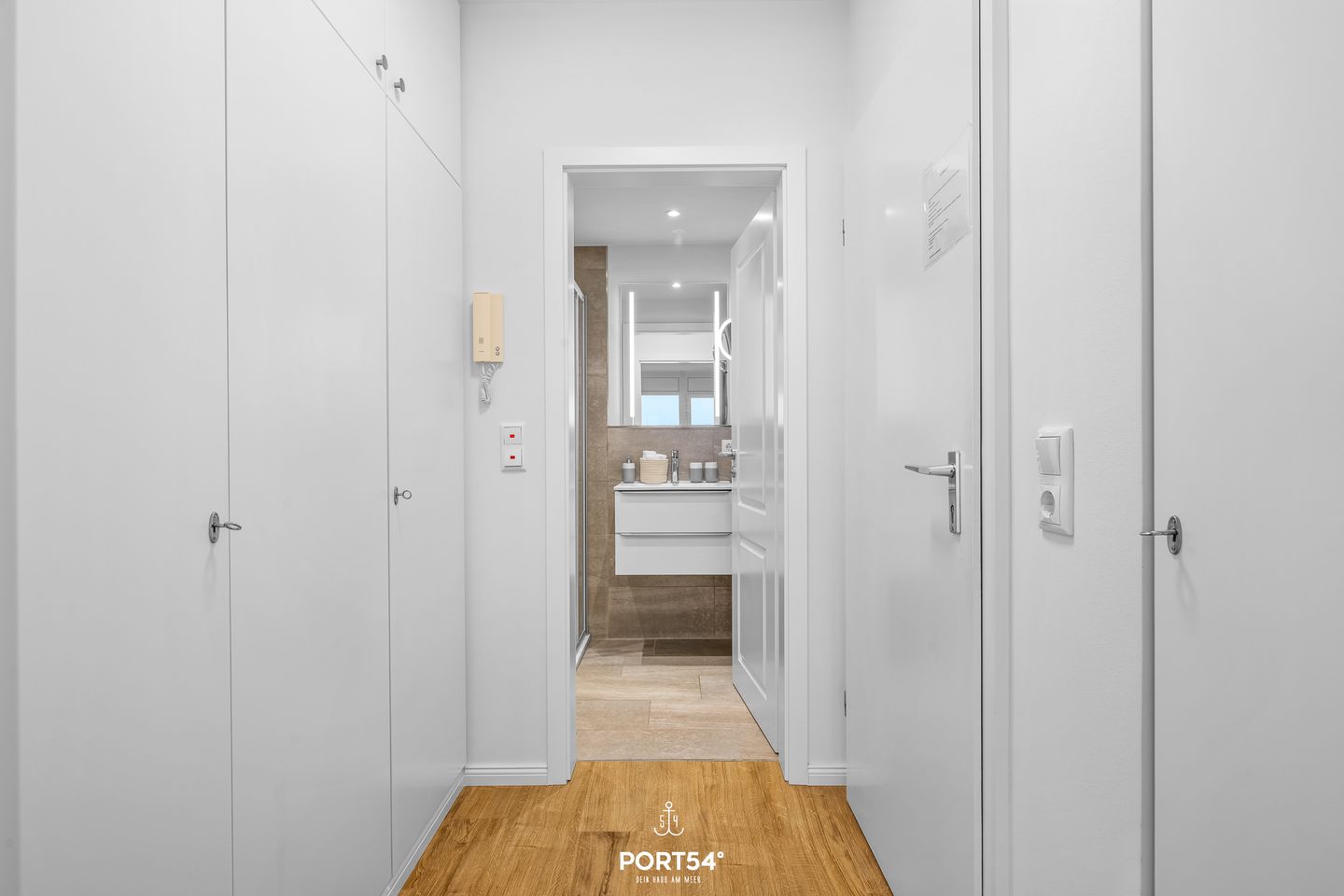 Das neu und modern eingerichtete Apartment überzeugt mit einem stilvollen Wohnkonzept. Der Wohn- und Schlafbereich ist mit einem gemütlichen Doppelbett sowie bequemen Sesseln ausgestattet, die zum Entspannen und Genießen des Ausblicks einladen. Vom Balkon aus eröffnet sich Ihnen ein traumhafter Panoramablick auf die Nordsee – ideal für ruhige Stunden an der frischen Meeresluft. Das moderne Bad mit Dusche rundet den komfortablen Eindruck ab.