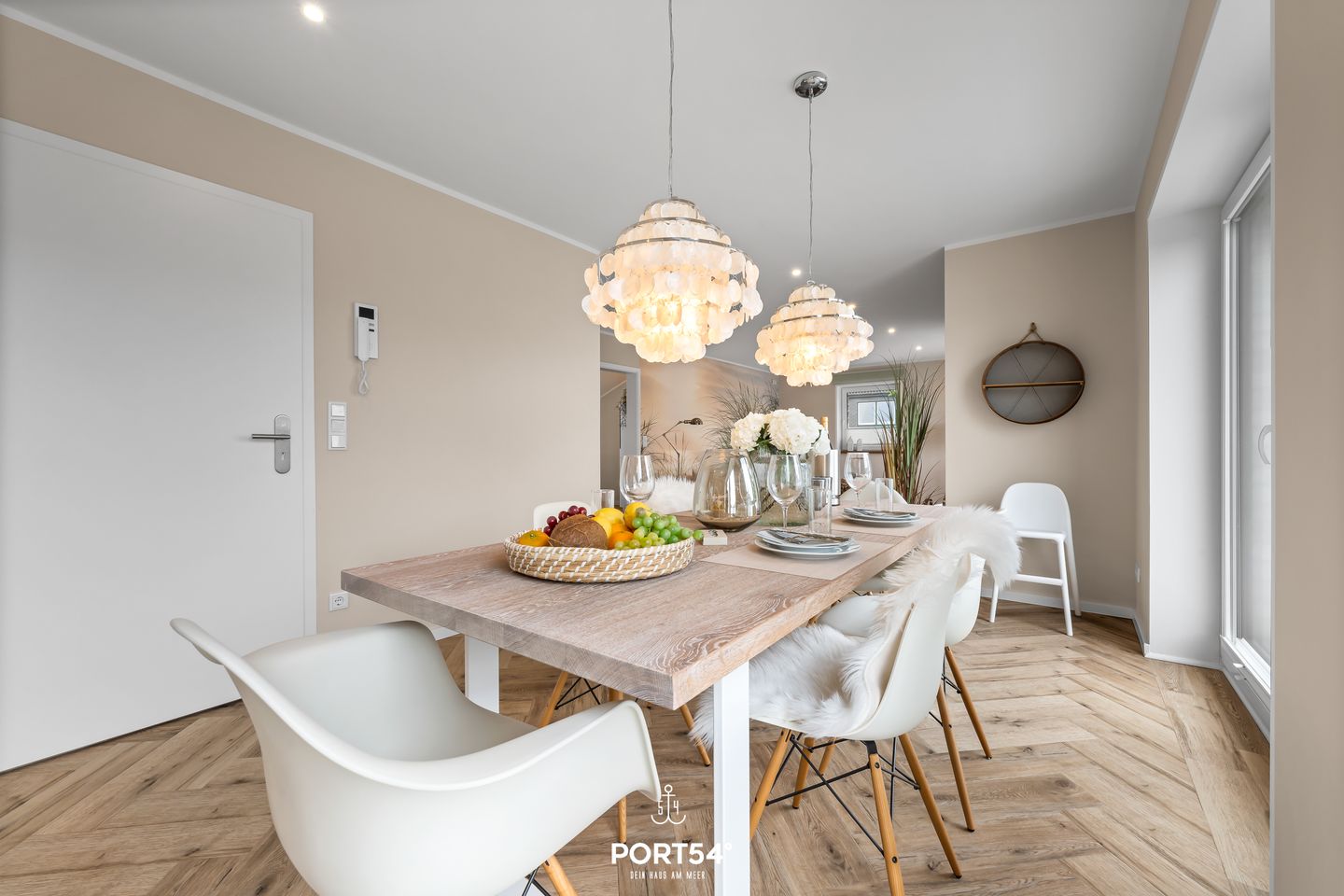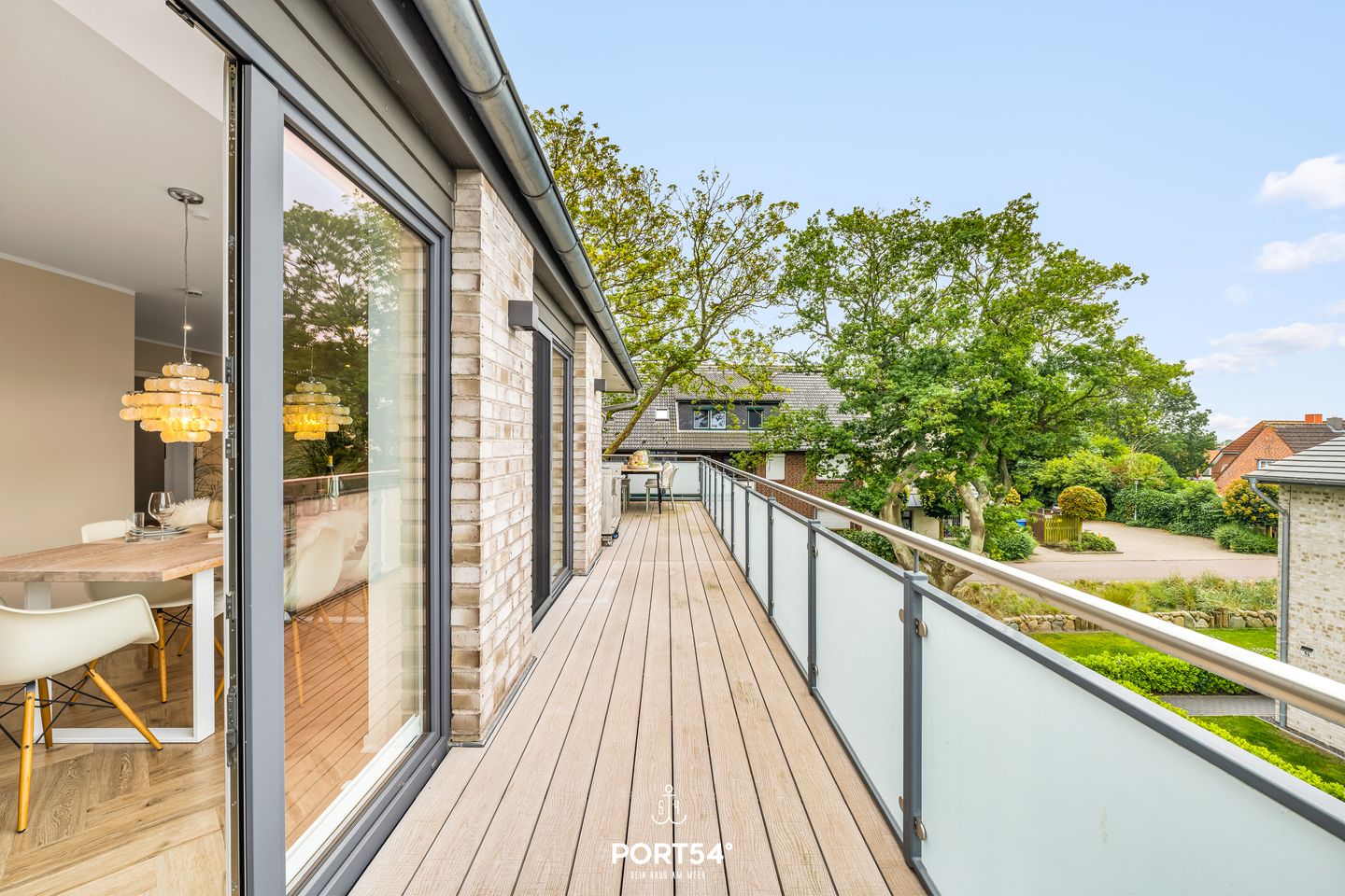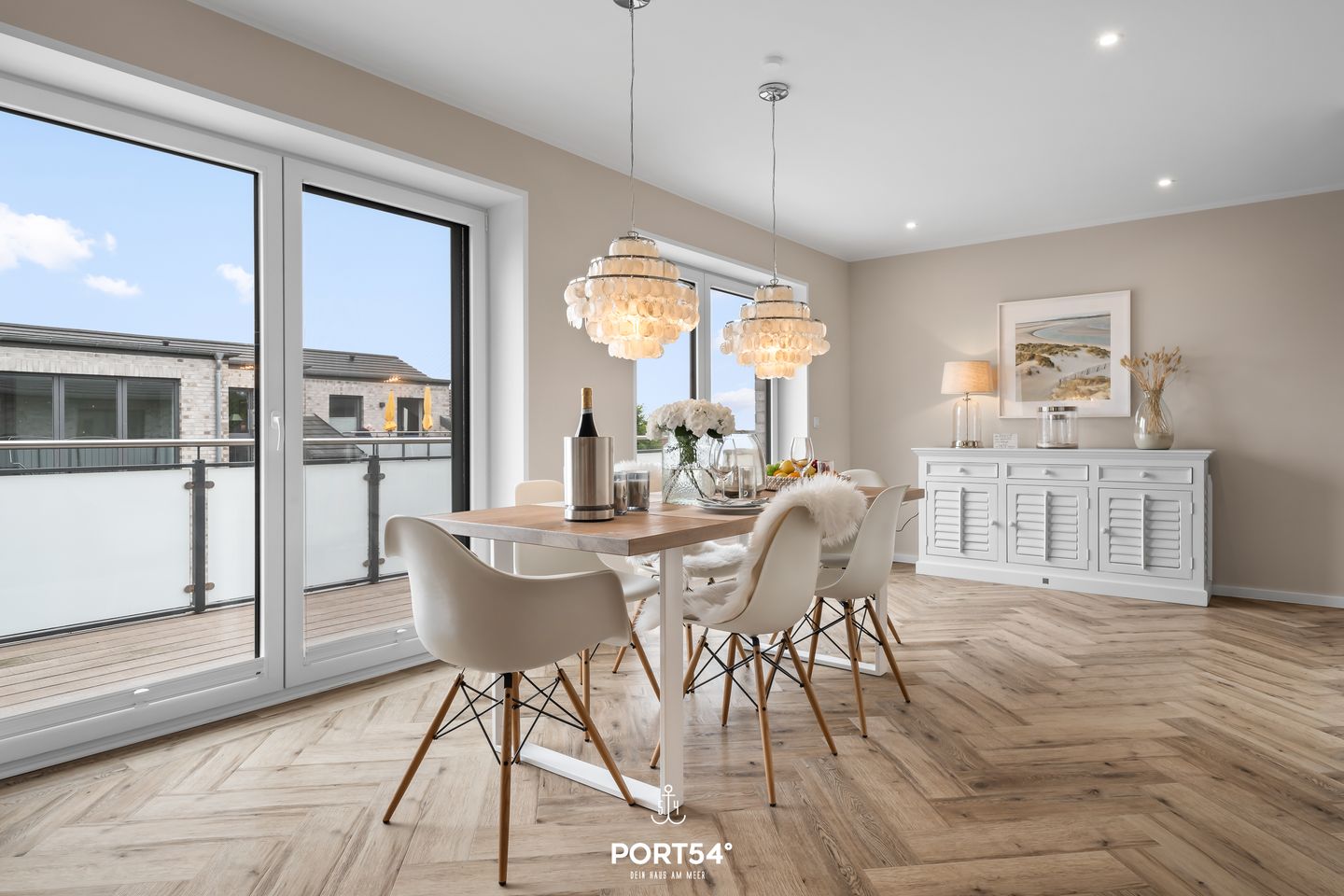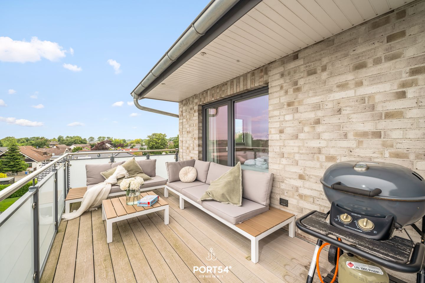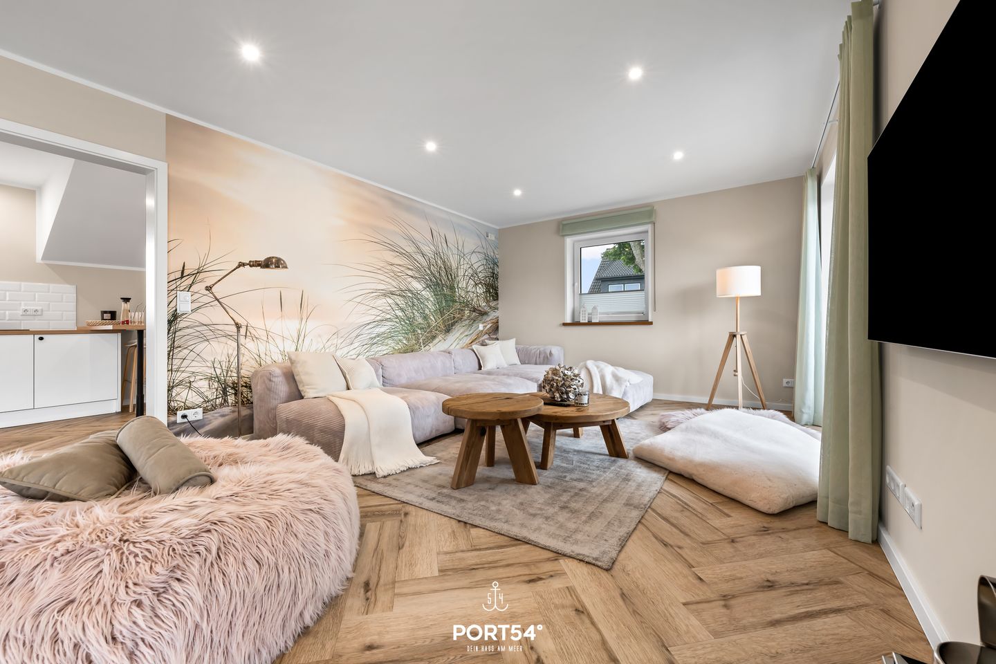Im großzügigen Wohnzimmer genießen Sie entspannte Stunden, während die große Terrasse mit hochwertigen Loungemöbeln, einem Strandkorb und einem Grill zum Verweilen im Freien einlädt – der perfekte Ort, um die frische Seeluft und die Sonne zu genießen.