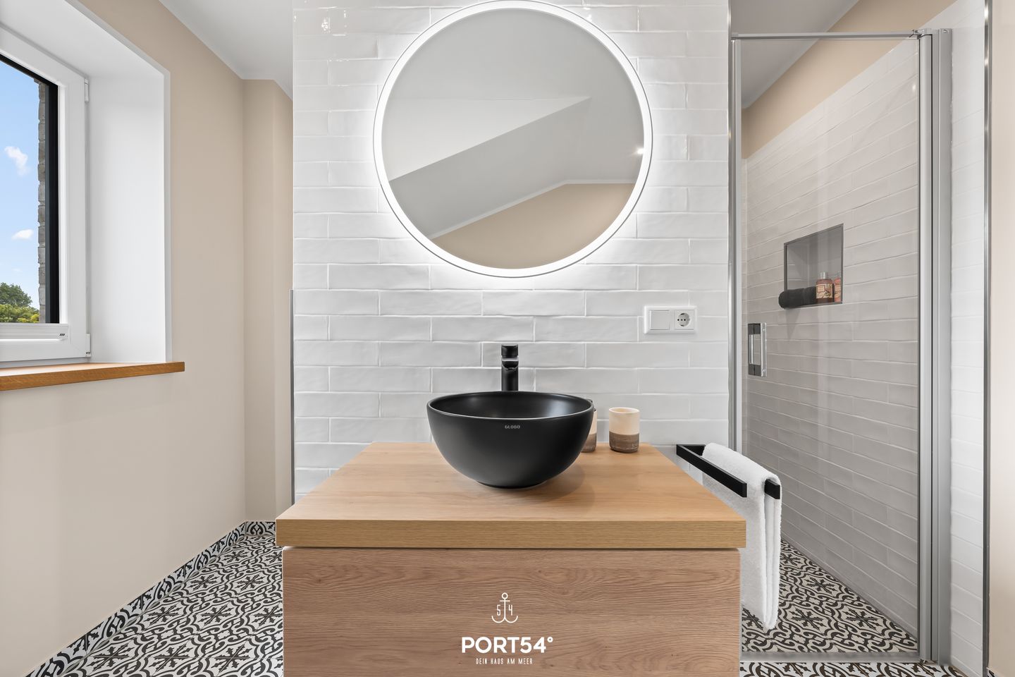 Die topmoderne Küche ist bestens ausgestattet und lädt zum gemeinsamen Kochen ein. Das Badezimmer bietet luxuriösen Komfort mit Badewanne und ebenerdiger Dusche – ideal zum Abschalten nach einem Tag am Meer.