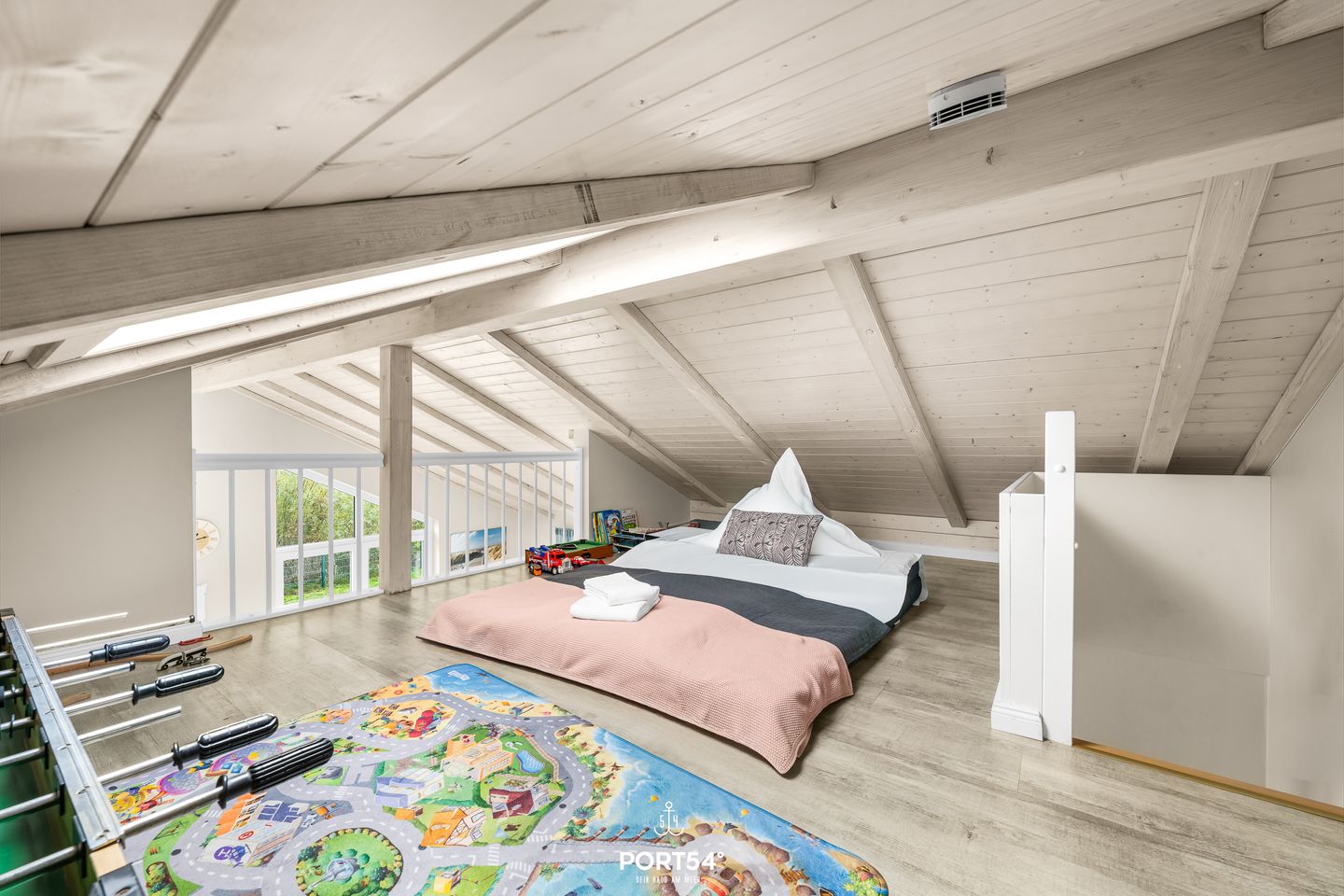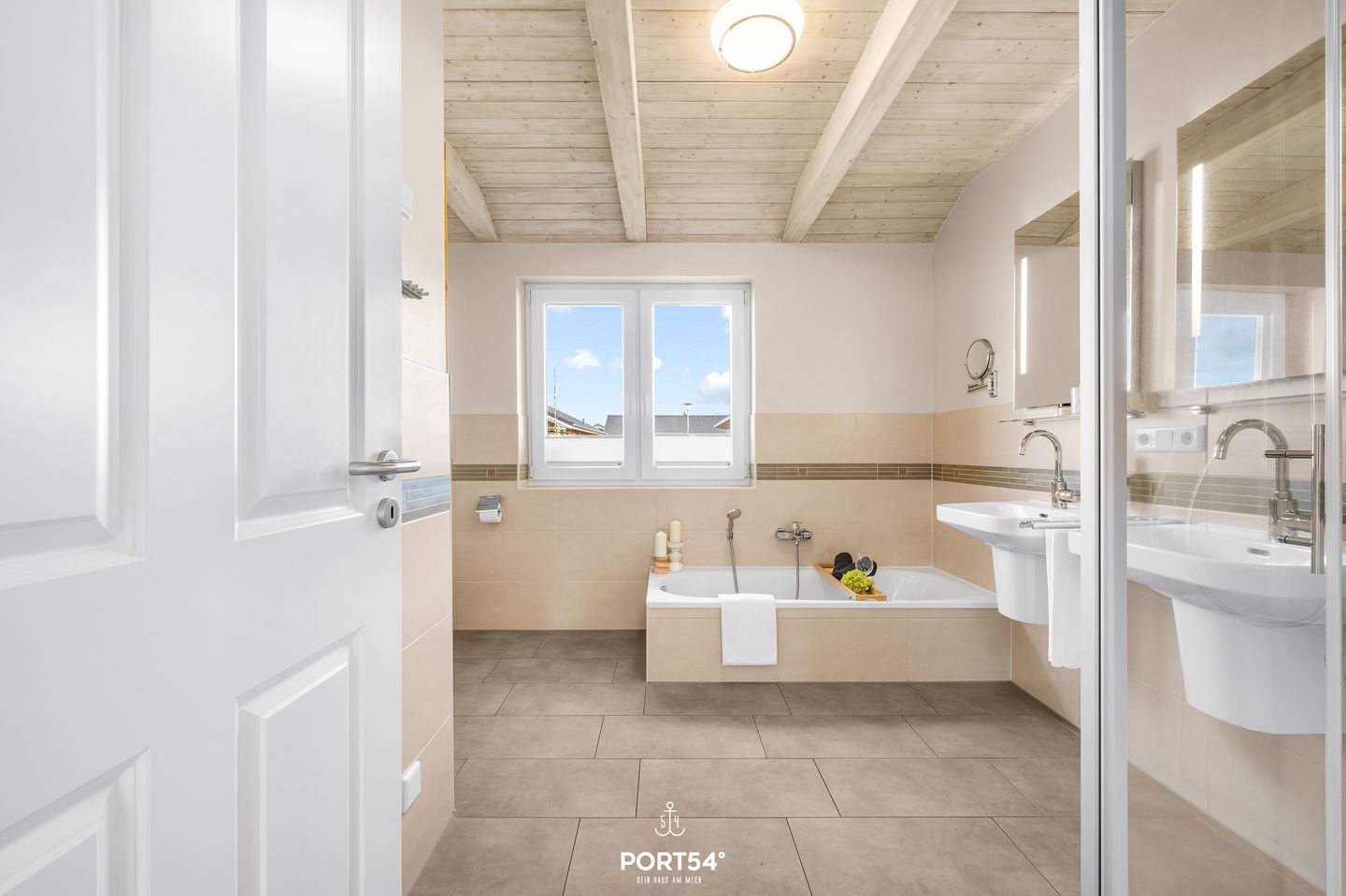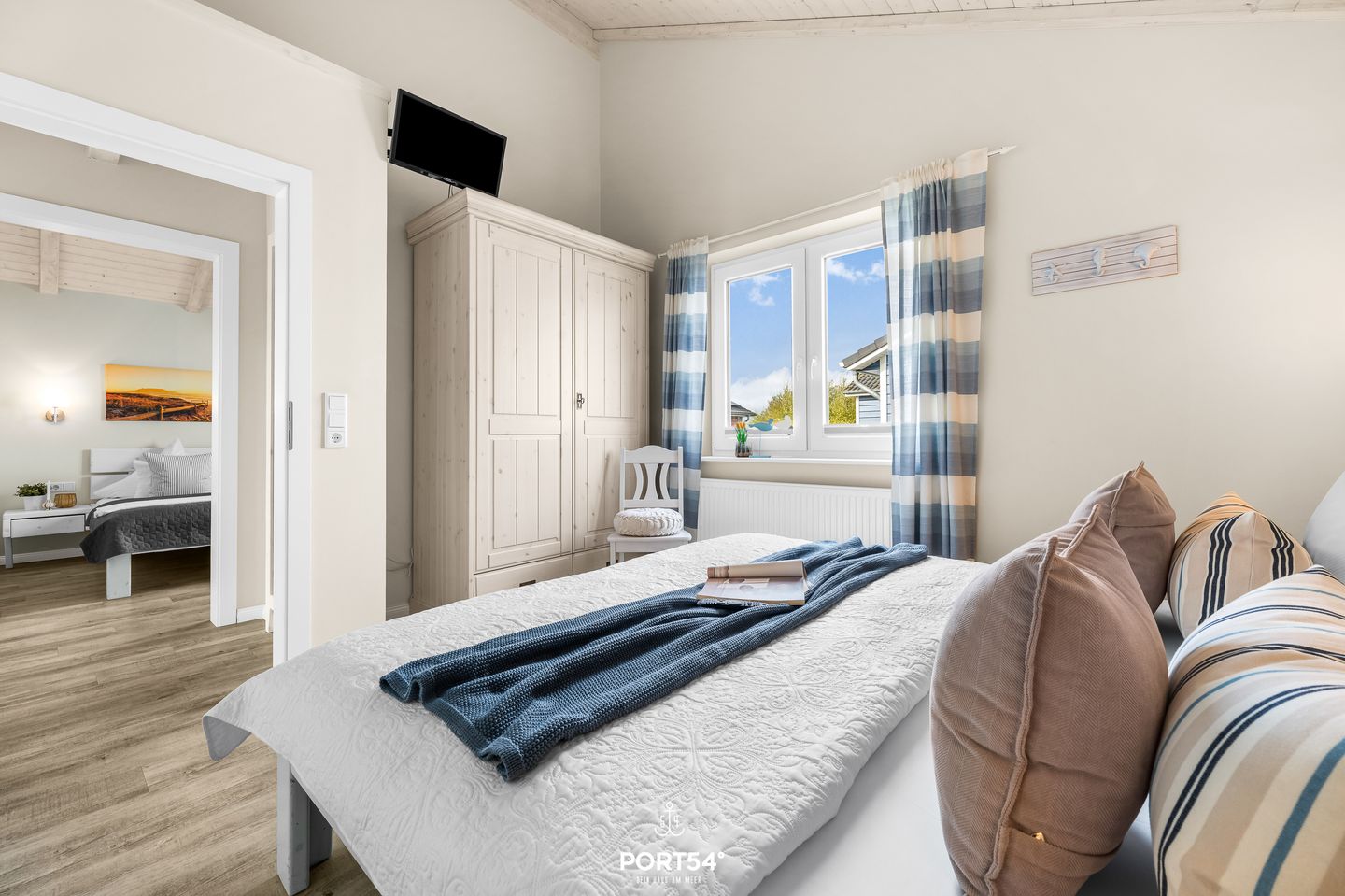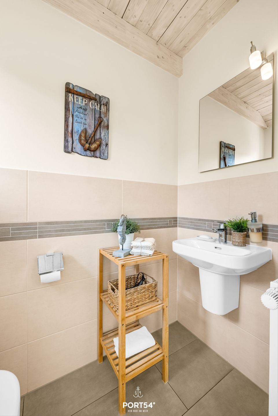 Im Haus stehen Ihnen zwei Schlafzimmer mit Laminatboden und Doppelbetten zur Verfügung. Zwei Klappmatratzen auf der Galerie bieten 2 weitere Schlafmöglichkeiten. Damit auch kleine Gäste komfortabel wohnen, sind ein Babybett und ein Kinderhochstuhl vorhanden. Das Badezimmer ist hochwertig ausgestattet und bietet sowohl eine Dusche als auch eine Badewanne, ein Waschbecken sowie Fenster für Tageslicht. Zusätzlich steht Ihnen ein Gäste-WC zur Verfügung. Für Ihren Komfort finden Sie außerdem eine Waschmaschine mit Eigennutzung vor.