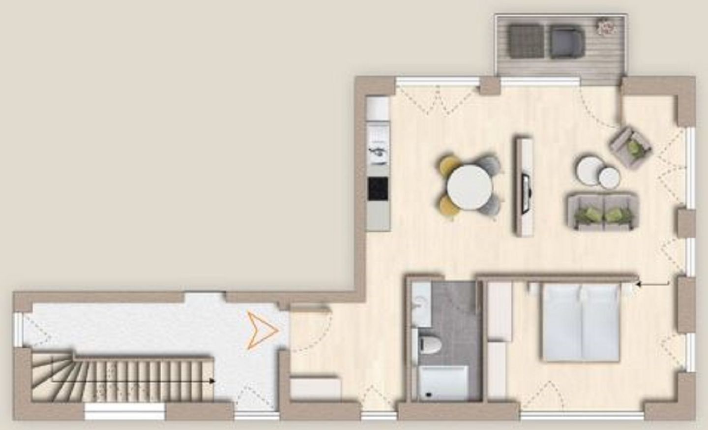 Die Ferienwohnung bietet Platz für bis zu vier Personen und verfügt über ein gemütliches Schlafzimmer mit komfortablem Doppelbett sowie ein lichtdurchflutetes Wohnzimmer mit offener, hochwertig ausgestatteter Küche. Im Wohnbereich steht ein bequemes Schlafsofa zur Verfügung, das zwei weiteren Gästen einen angenehmen Schlafplatz bietet. Ergänzt wird die Ausstattung durch ein modernes Badezimmer in zeitloser Gestaltung. Damit eignet sich das Apartment ideal für Paare, kleine Familien oder Freunde, die Erholung, Komfort und unmittelbare Nähe zur Natur schätzen.