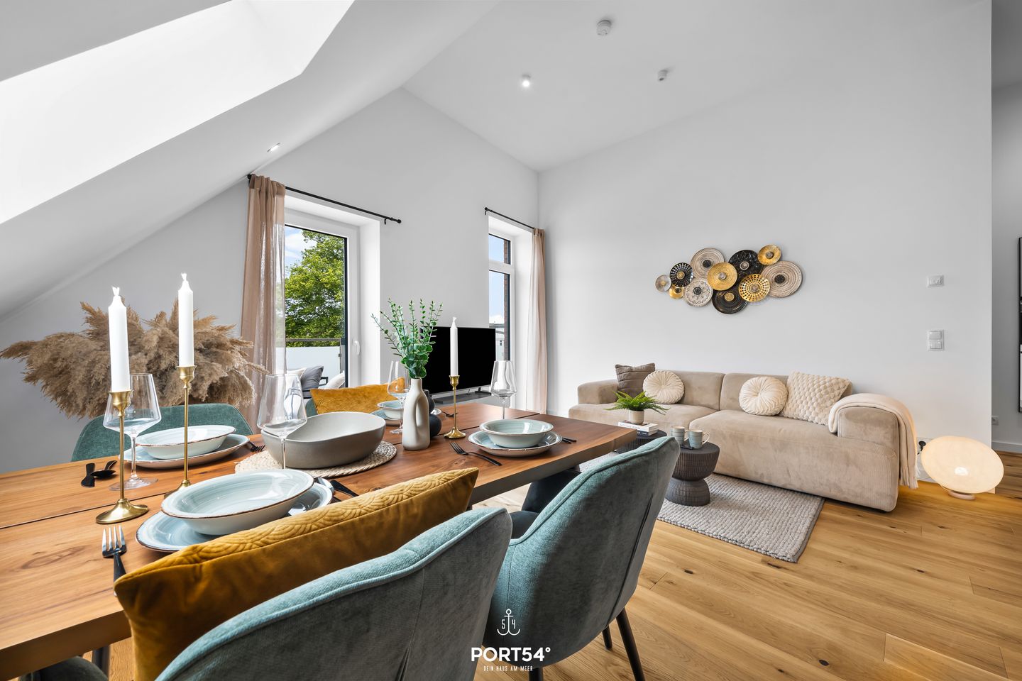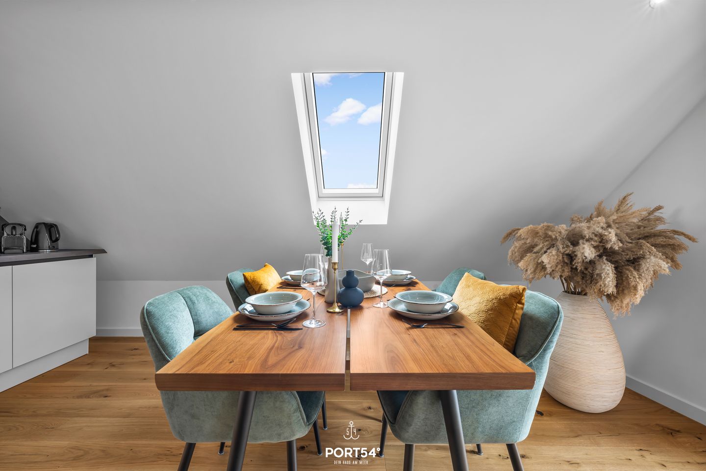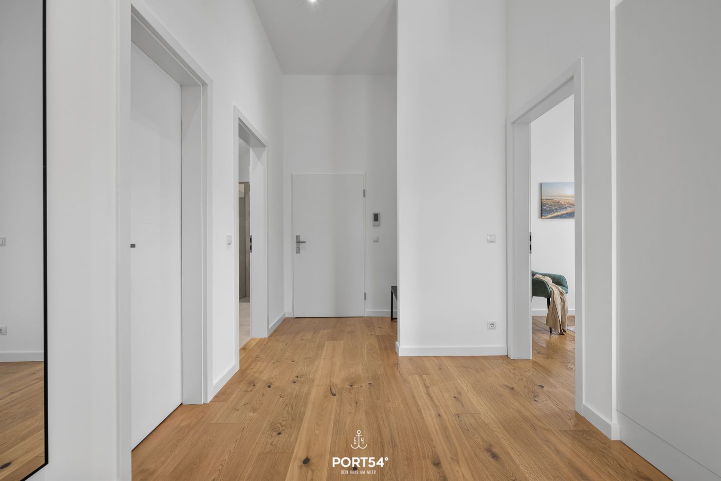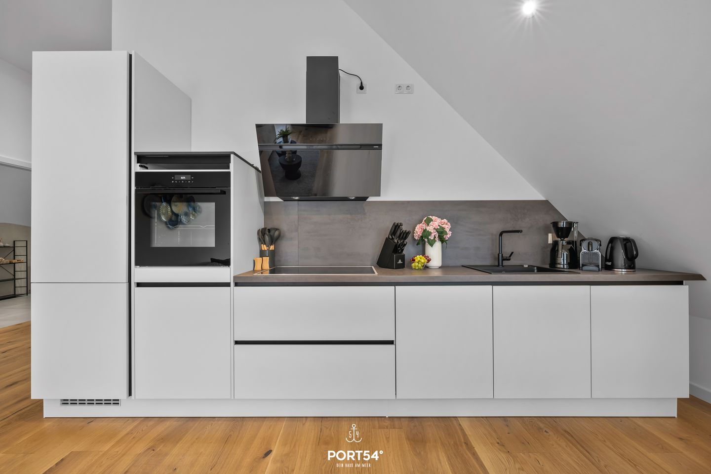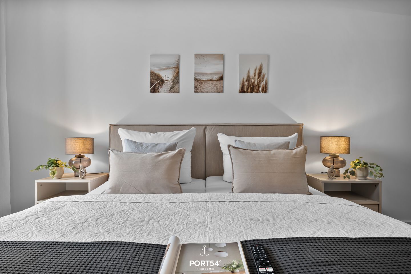 Die Wohnung verfügt über zwei gemütliche Schlafzimmer, die mit hochwertigen Parkettböden ausgestattet sind und eine erholsame Nachtruhe garantieren. Das geräumige Wohnzimmer besticht durch ein modernes Design und ist mit einer hochwertigen Couch und TV ausgestattet, sodass Sie nach einem Tag am Strand gemütlich einen Filmabend genießen können. Der offene Wohn- und Essbereich lädt zu gemeinsamen Mahlzeiten ein und die komplett ausgestattete Küche lässt keine Wünsche offen. Hier finden Sie alles, was Sie benötigen – vom Induktionskochfeld über einen Backofen bis hin zu einer Spülmaschine. Damit wird das Kochen zum Vergnügen!