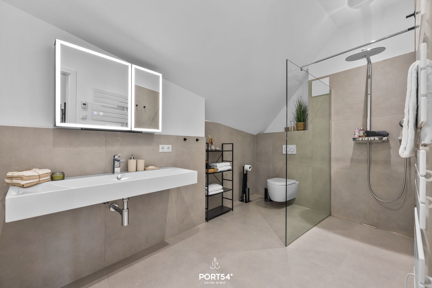 Zur weiteren Ausstattung gehören Badezimmer mit einer bodengleichen Dusche, Waschmaschine, Trockner, Fußbodenheizung, E-Bike Ladestation im abschließbaren Fahrradschuppen und ein privater Parkplatz, um Ihnen maximalen Komfort zu bieten. Zusätzlich stehen Ihnen Möglichkeiten für verschiedene Freizeitaktivitäten in der Umgebung zur Verfügung, von Angeln über Fußball bis hin zu kulturellen Events und Festivals, sodass für jeden Geschmack das Richtige dabei ist.