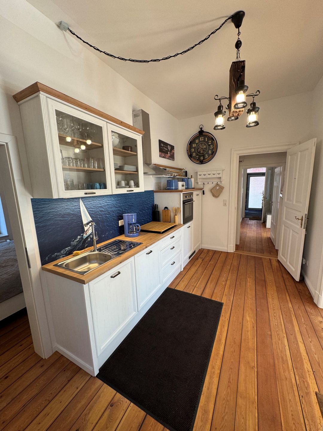 Die Nachbarwohnung „Backbord“ bietet ebenfalls drei Schlafplätze und ist über eine abschließbare Zwischentür mit „Steuerbord“ verbunden. Auf Wunsch können beide Wohnungen gemeinsam angemietet werden – ideal, damit die ganze Familie im Urlaub ausreichend Platz findet.