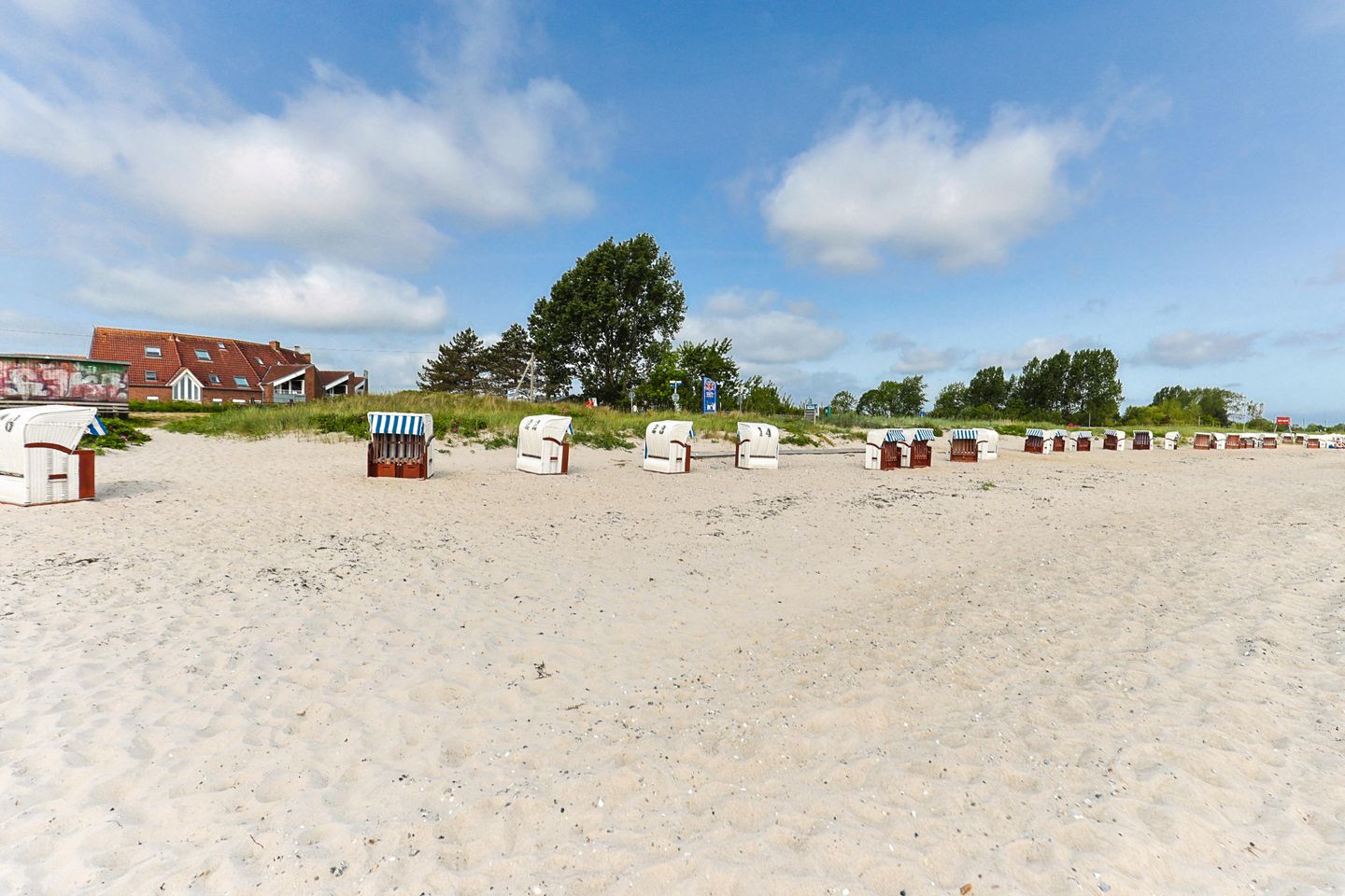 Der überdachte Balkon mit hochwertigen Gartenmöbeln bietet Ihnen einen Blick auf das Meer, während Sie im Garten zusätzliche Annehmlichkeiten wie Liegewiese, Grillplatz, Sandkasten, Schaukel, Rutsche und sogar einen Spielplatz samt Klettergerüst für Kinder finden. Ebenfalls befindet sich hier ein Badminton- und Volleyballfeld. Als weiteres Highlight steht Ihnen ein Strandkorb am Strand kostenlos in den Sommermonaten zur Verfügung.