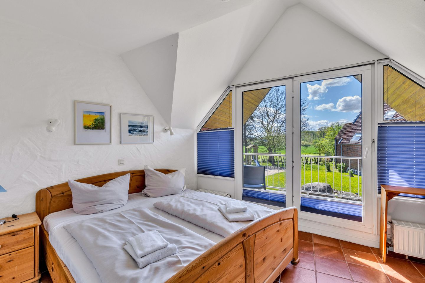 Neben dem „Elternschlafzimmer“ mit einem großen Doppelbett (200x200cm) hat das Schlafzimmer im Obergeschoss drei Einzelbetten (90x200cm). Das voll ausgestattete Dusch-Bad sorgt für Entspannung nach einem warmen Sommertag.