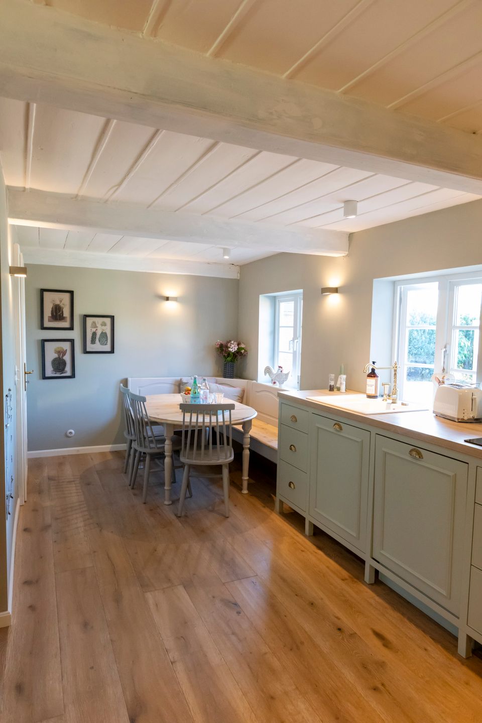 Das Ferienhaus "Fjord Cottage" besteht aus einem kernsanierten Reetdachhaus. In dem Doppelhaus befinden sich die beiden Ferienwohnungen "Steuerbord" und "Backbord". Die Haushälfte "Steuerbord" bietet Ihnen auf 124m² Platz bis zu 6 Personen. Die Haushälfte "Backbord" bietet Ihnen auf 100m² ebenfalls Platz bis zu 6 Personen. Das gesamte Ensemble befindet sich in einer abgelegenen Straße am Rand eines Feldes - hier können Sie hervorragend dem Alltagsstress entfliehen!