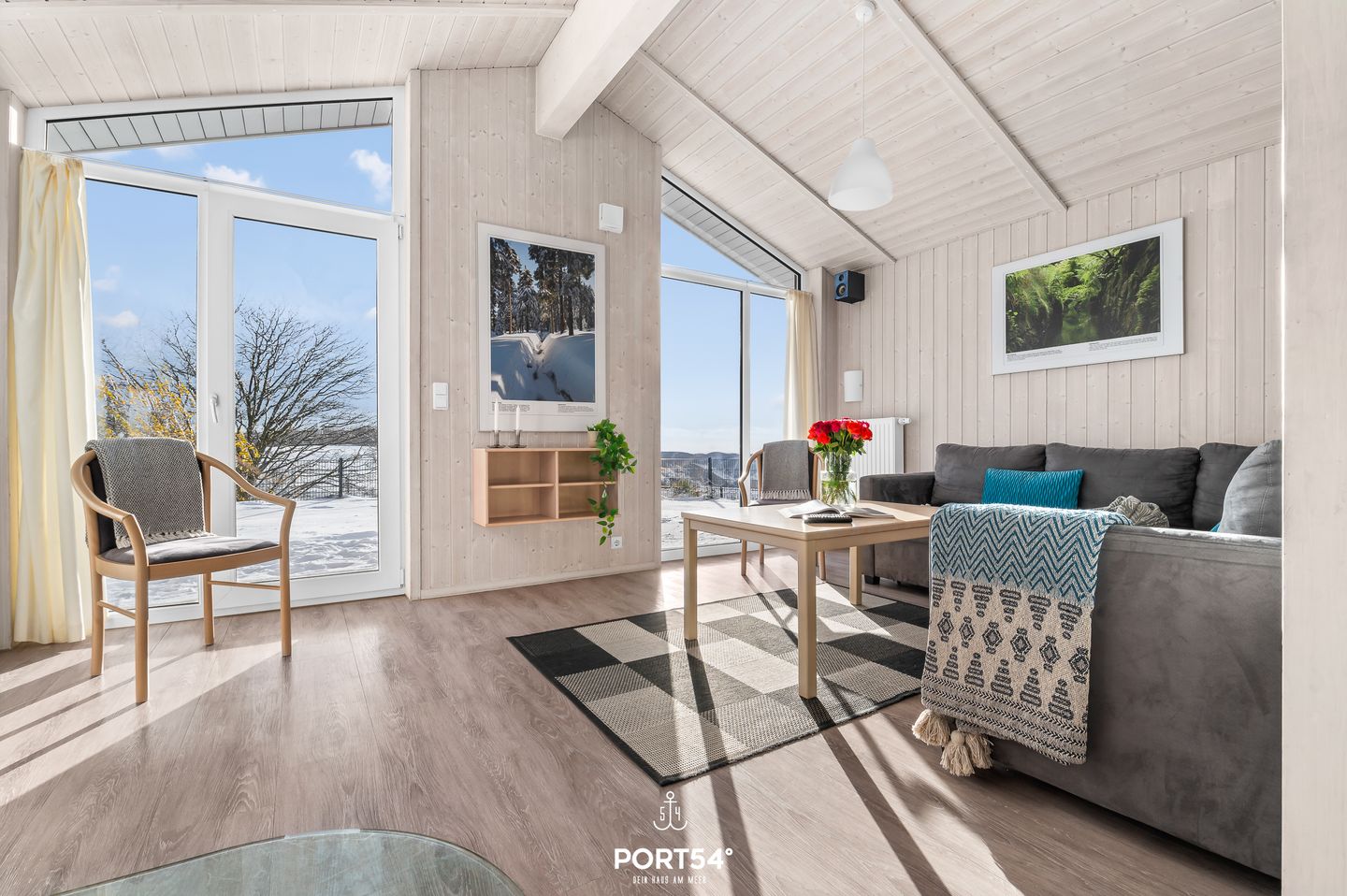 Der offene Wohnbereich bildet das Herzstück des Hauses. Eine gemütliche Couch, rustikale Holzelemente und ein Holzofenkamin sorgen für eine behagliche Atmosphäre, die zum Entspannen und Verweilen einlädt. Die großen Fenster bieten einen atemberaubenden Blick auf die umgebende Natur und lassen viel Tageslicht in den Raum. Zur Unterhaltung stehen insgesamt 4 TV-Geräte sowie eine Musikanlage zur Verfügung, sodass für alle Gäste stets für Unterhaltung gesorgt ist.