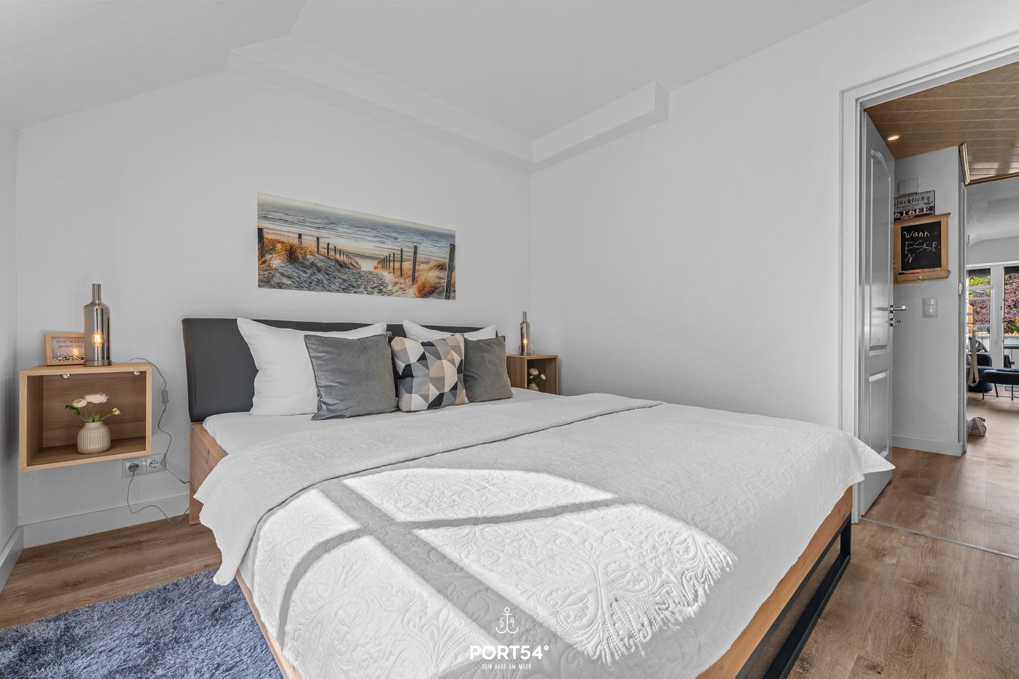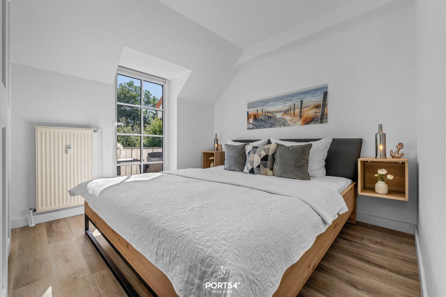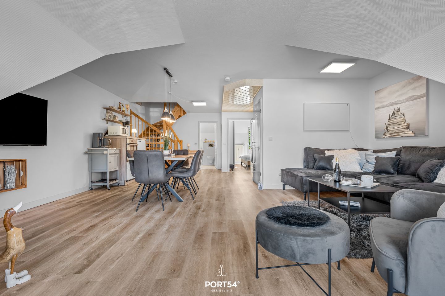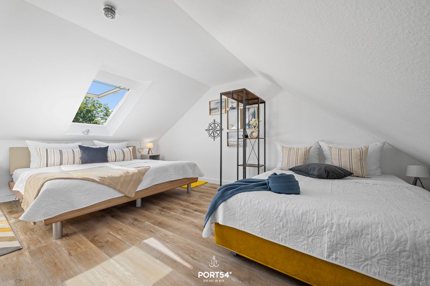 Die liebevoll eingerichtete Ferienwohnung überzeugt durch ihre moderne und gleichzeitig gemütliche Atmosphäre. Zwei separate Schlafzimmer ermöglichen Privatsphäre und erholsame Nächte. Während das eine Schlafzimmer im ersten OG mit einem Doppelbett ausgestattet ist (180x200cm), verfügt das zweite Schlafzimmer im Dachgeschoss über ein großes Doppelbett (200x200cm), sowie ein weiteres Bett für eine Person (140x200cm) und einen Fernseher. Der großzügige Wohnbereich mit Sofaecke, Sessel und Essbereich schafft ein behagliches Ambiente für entspannte Stunden.
