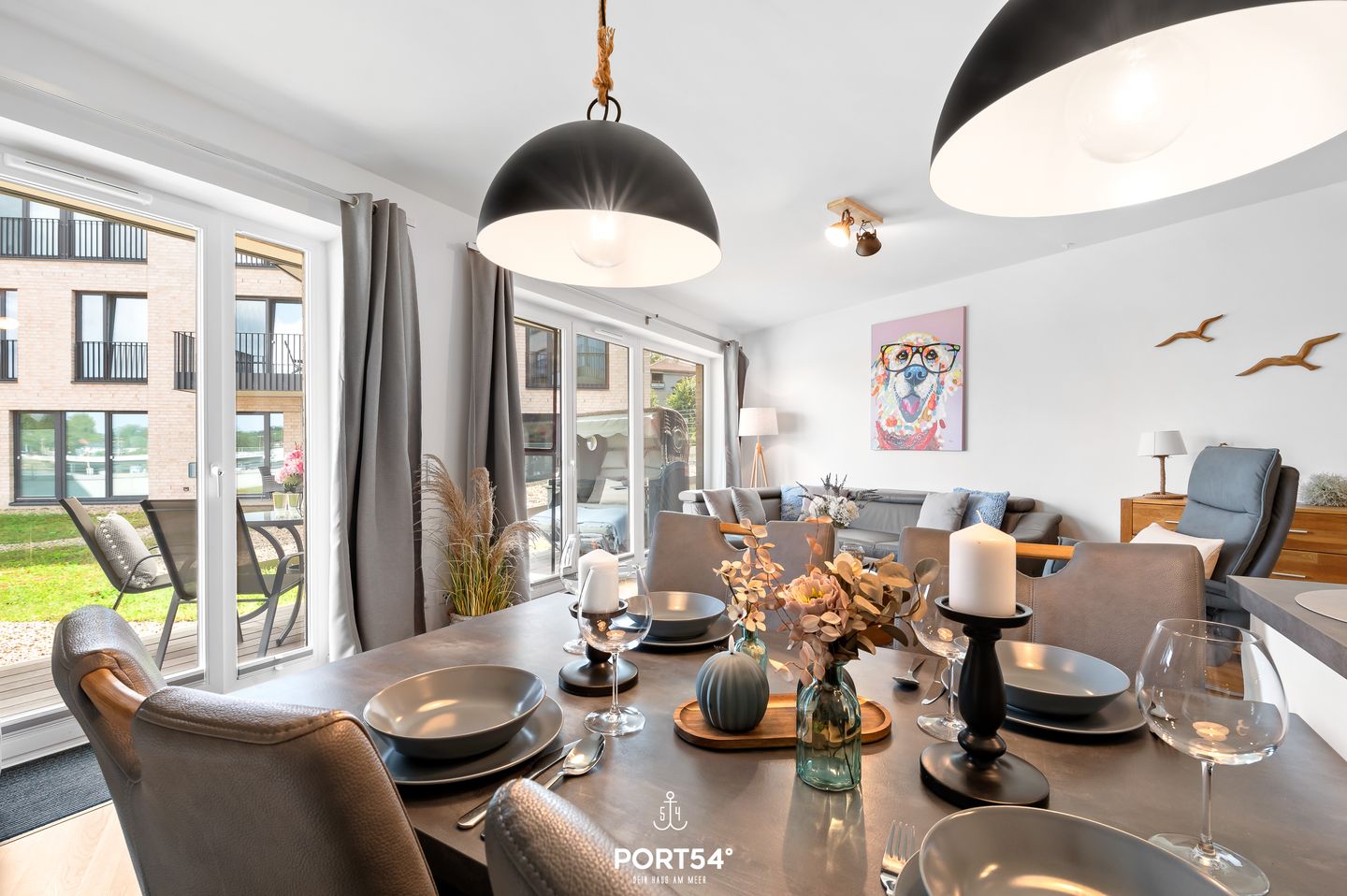 Genießen Sie Ihren Urlaub in der gemütlichen Ferienwohnung "Schleiquartier" - eine moderne und barrierearme Wohnung direkt am Kappelner Hafen mit außergewöhnlichen Schleiblick! Die ebenerdige Wohnung bietet auf ca. 80m² Platz für bis zu 4 Personen. Der offen gestaltete Wohn- und Essbereich ist das Herzstück der Wohnung und bietet dank seiner bodentiefen Fenster einen fantastischen Ausblick, der mit einem gemütlichem Sofa und einem Relaxsessel perfekte Stunden für Entspannung und Geselligkeit verspricht. Die vollausgestattete und moderne Küche lädt zum kochen ein. In dem einen Schlafzimmer erwartet Sie ein gemütliches Boxspring-Doppelbett (180x200cm), ausgestattet mit einem Kleiderschrank, Ruhesessel, Verdunkelungsmöglichkeiten und einem Flachbild-TV für entspannte Abende. Das zweite Schlafzimmer bietet Ihnen ein kleines Boxspring-Doppelbett (140x200cm), eine Kommode, Verdunkelungsmöglichkeiten und ebenfalls einen Flachbild-TV. Im Badezimmer erwartet Sie nicht nur eine ebenerdige Dusche, sondern auch ein Handtuchtrockner, ein kleiner Kosmetikspiegel und ein Föhn. Für längere Aufenthalte stehen im Keller eine gemeinschaftliche Waschmaschine und ein Trockner bereit. Für unsere kleinen Gäste stehen ein Kinderhochstuhl, ein Kinderreisebett und ein Kindertritthocker bereit. Vom Wohnbereich aus gelangen Sie auf die möblierte Terrasse, das Highlight der Wohnung mit einem traumhaften Ausblick direkt auf die malerische Schlei. Genießen Sie morgens im Strandkorb Ihren Kaffee oder verbringen Sie unvergessliche Grillabende. Beobachten Sie die vorbeifahrenden Schiffe, lassen Sie sich von der frischen Ostseeluft umschmeicheln. Die Innenstadt von Kappeln, mit ihren charmanten kleinen Läden, erreichen Sie in nur wenigen Fußminuten. Ein perfekter Ort für entspanntes Bummeln und Shoppen, um das Flair der Stadt zu erleben. Ihr Fahrzeug hat einen sicheren Platz in der Tiefgarage, und für Ihre mitgebrachten oder geliehenen Fahrrädern steht ebenfalls ein Fahrradraum zur Verfügung. Hier sind Sie nicht nur komfortabel untergebracht, sondern auch bestens vorbereitet für Erkundungstouren entlang der Schlei.