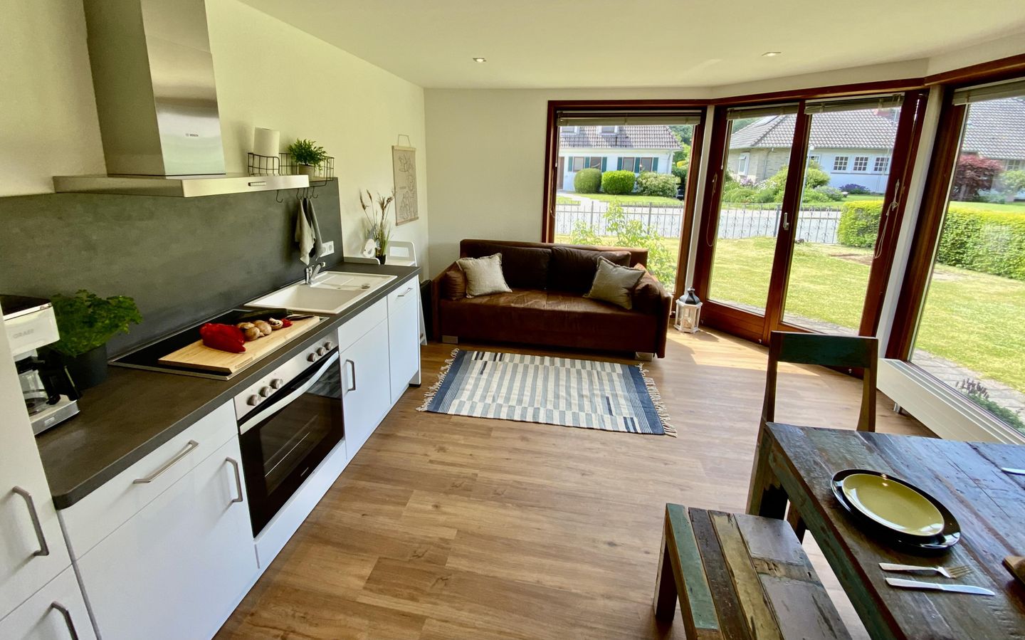 Genießen Sie einen Urlaub im Herzen von Kappeln an der Schlei. Lassen Sie Ihr Auto gerne stehen und schlendern sie abends ans Wasser. Die Ferienwohnung befindet sich im Erdgeschoss und bietet auf ca. 60m² Platz für 4 Personen. Neben dem Wohnzimmer mit integrierter Küche und Essecke, stehen Ihnen zwei Schlafzimmer mit je einem Doppelbett (180x200cm), Flachbild-TV und Verdunklungsmöglichkeiten für eine gute Nachtruhe zur Verfügung. Lassen Sie Ihre Urlaubstage auf dem Sofa im Wohnzimmer ausklingen und schlafen Sie anschließend in Ihrem Urlaub ausgiebig aus. In den zwei Badezimmern finden Sie eine Dusche und einen Föhn vor. Um den Alltagsstress in der Sonne zu vergessen, können Sie sich auf der kleinen Terrasse, angrenzend zu Ihrem Schlafzimmer, im Strandkorb oder Liegestuhl, sowie auf der, vor dem Haus befindlichen, "Klönbank" entspannen. Ein Stellplatz sowie ein abschließbarer Fahrradschuppen sind vorhanden.