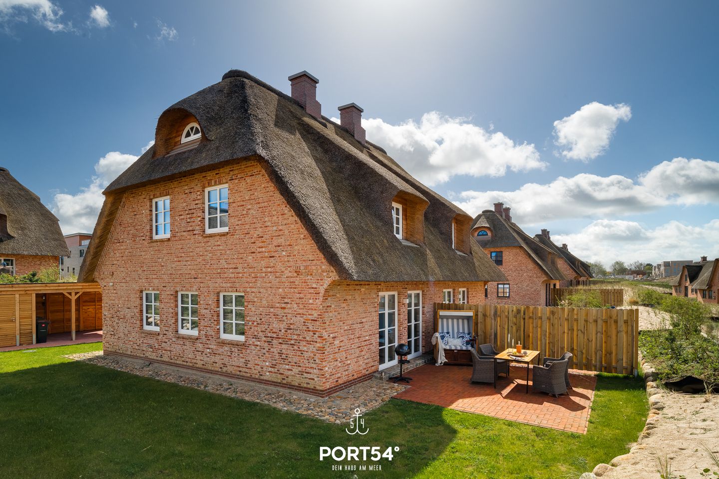 Das charmante, in 2023 neuerbaute und ökologisch sowie nachhaltig durchdachte Reetdachhaus auf den Schleiterrassen bietet Platz für bis zu vier Personen und ist perfekt für einen entspannten Urlaub in der Schleistadt Kappeln geeignet und bietet eine entspannte Atmosphäre. Über drei Etagen erstreckt sich die Doppelhaushälfte und bietet neben 2 Schlafzimmern und einer offenen Galerie, auch einen lichtdurchfluteten Wohn- und Essbereich mit Terrassenzugang sowie zwei Badezimmer. Im Erdgeschoss erwartet Sie der offene Wohn- und Essbereich mit Wohnlandschaft und einem Kamin. Angrenzend befindet sich der Essbereich und die offene, modern gestaltete Küche. Ebenfalls befindet sich im Erdgeschoss ein Tageslichtbad mit ebenerdiger Dusche. Im ersten Obergeschoss erwarten Sie zwei Schlafzimmer, wovon eins mit einem großen Doppelbett (180x200cm) und das andere mit einem Doppelbett (je 160x200cm) ausgestattet sind. Hier erwartet Sie zudem das Wannenbad mit zusätzlicher ebenerdiger XXL-Dusche. Vom ersten Obergeschoss erreicht man die Galerie im zweiten Obergeschoss, wo ein gemütlicher Rückzugsort mit Schleiblick geschaffen wurde. Das Haus verfügt über ein Carport, welches Ihnen bequemes Parken bietet. Angrenzend befindet sich ein abschließbarer Abstellraum, in welchem Fahrräder sicher untergestellt werden können. Die Terrasse lädt zum Verweilen im Freien ein, und der umliegende Garten bietet Ruhe und Erholung. Genießen Sie vom Ferienhaus aus einen tollen Blick auf die Schlei und die umliegende Landschaft. Die ruhige Lage sorgt für eine erholsame Auszeit vom Alltag. Ob Sie die Umgebung erkunden oder einfach die Seele baumeln lassen möchten, dieses Ferienhaus bietet den perfekten Rahmen für einen unvergesslichen Aufenthalt.