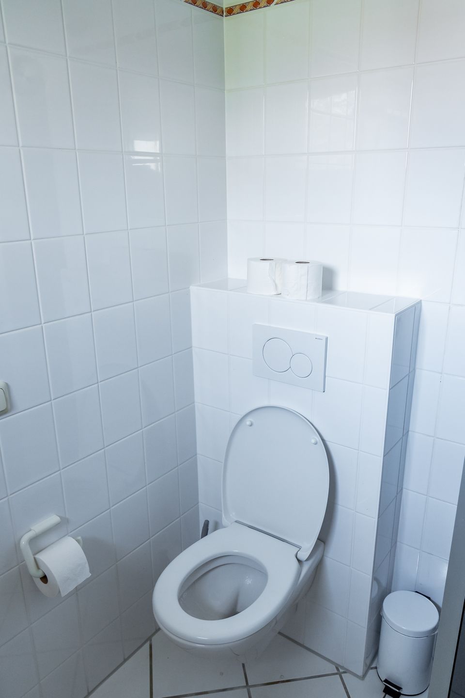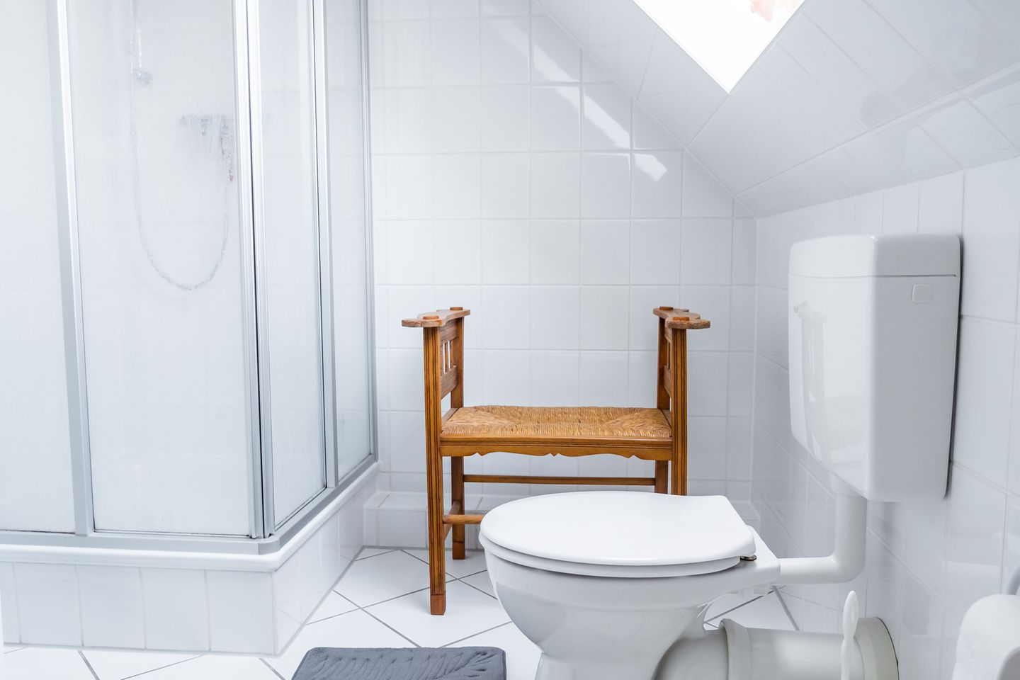 Im Haus gibt es 1 Badezimmer mit bodengleicher Dusche, WC, Fenster und Kosmetikspiegel. Zusätzlich steht ein Gäste-WC zur Verfügung. Die Schlafzimmer und der Wohnbereich sind mit Laminatboden ausgestattet.