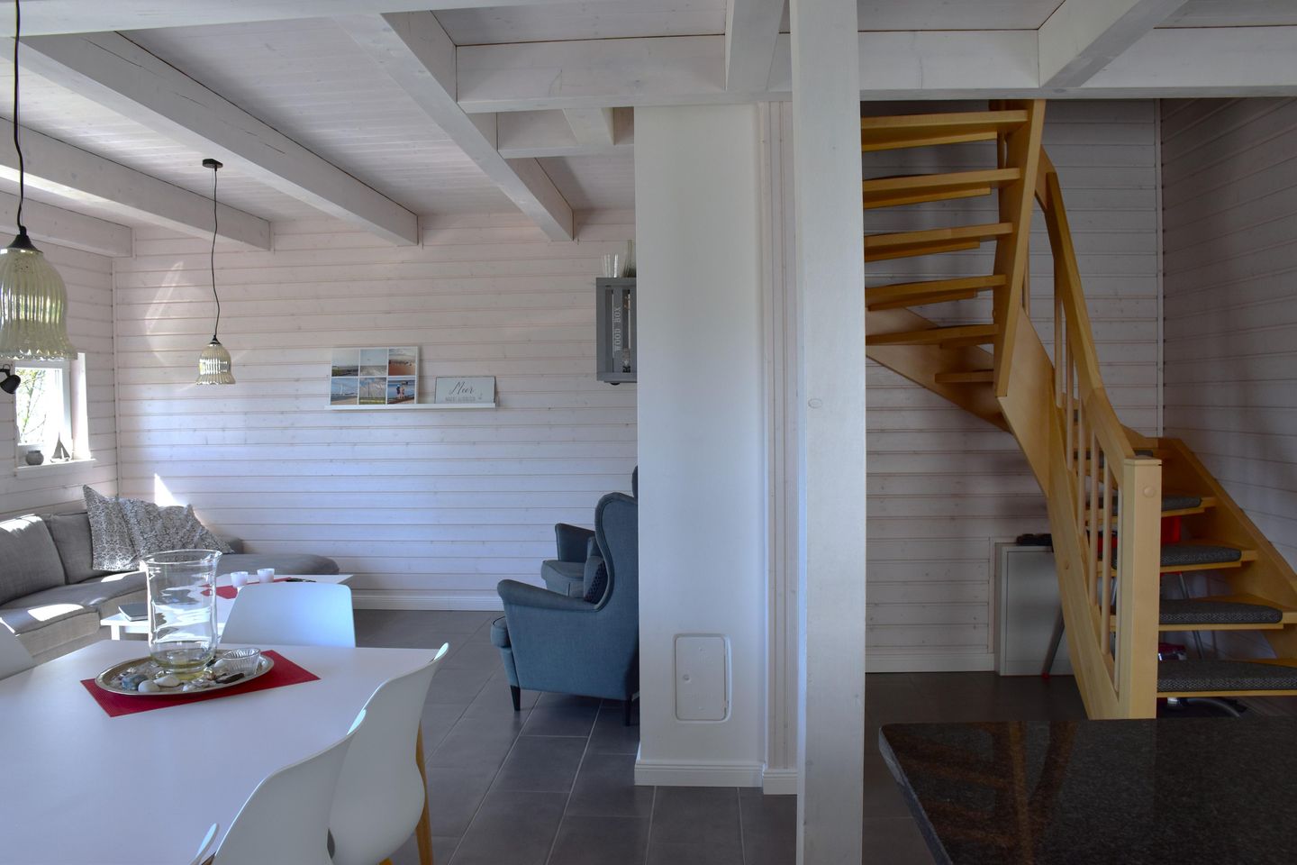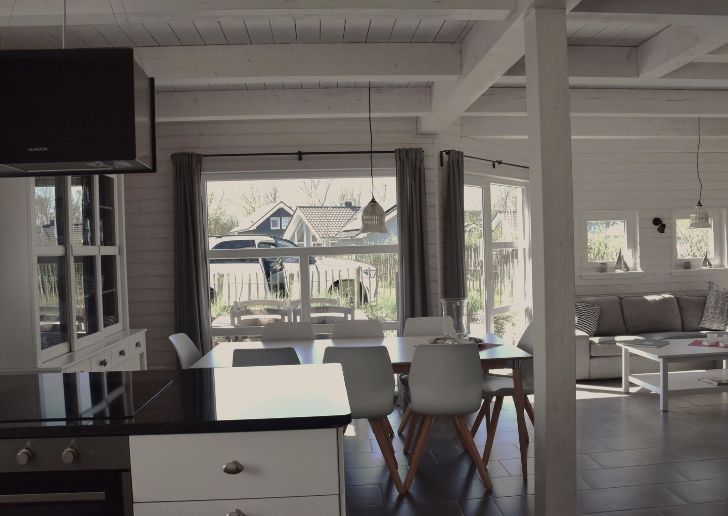 Die Küche ist umfassend ausgestattet und hält einen Geschirrspüler für Sie bereit. Wohn- und Essbereich sind lichtdurchflutet und bieten auch 8 Personen genügend Platz zum gemeinsamen Essen und Verweilen.