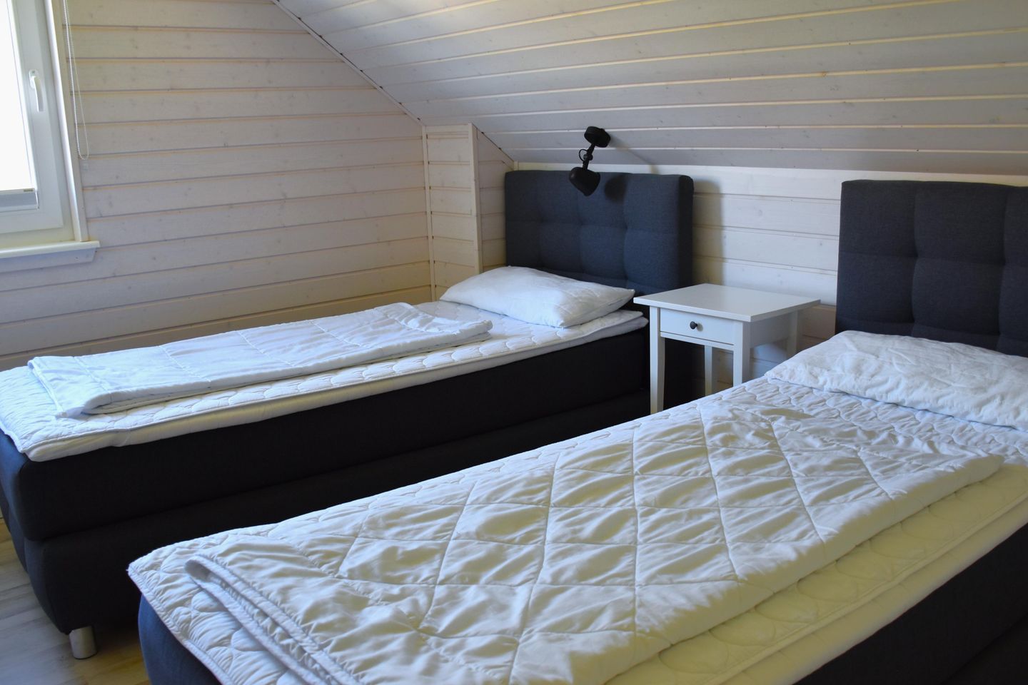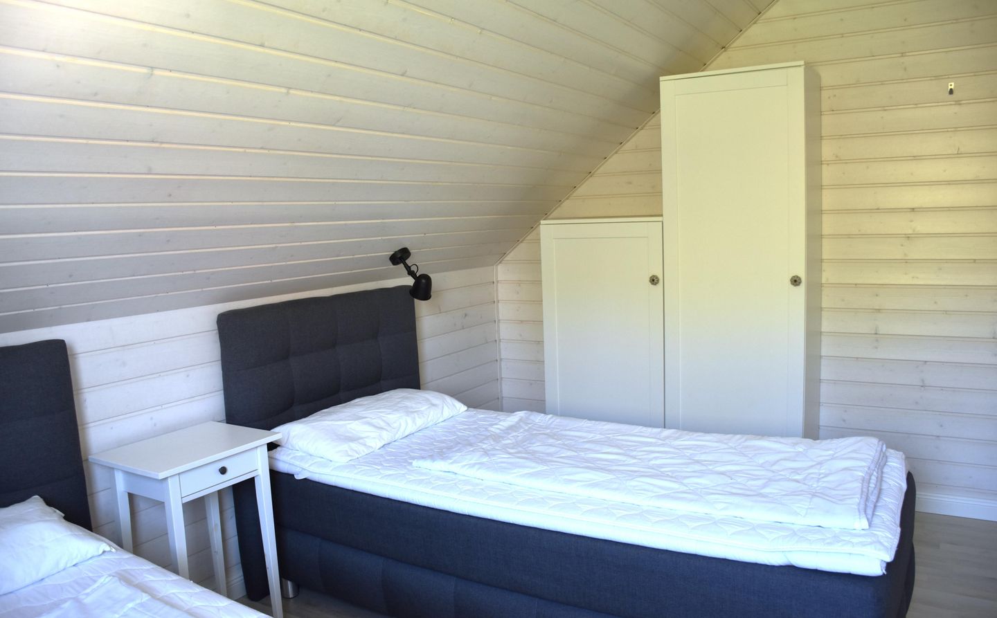 Im Erdgeschoss befindet sich ein Schlafzimmer mit zwei Einzelbetten. Diese Betten bieten eine angenehme Höhe für Menschen, die einen komfortablen Betteinstieg bevorzugen. Des Weiteren finden Sie ein Schlafzimmer mit zwei Einzelbetten und zwei Schlafzimmer mit Doppelbetten im Obergeschoss vor. Ihnen stehen zwei Stellplätze für Ihre PKW zur Verfügung.