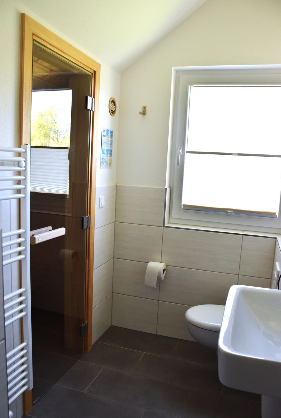 Die Sauna, im oberen Badezimmer bietet auch im Winter Gemütlichkeit und lässt direkt Urlaubsfeeling aufkommen.