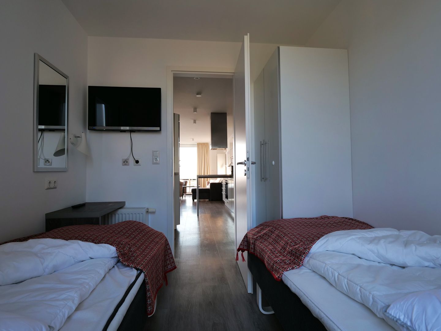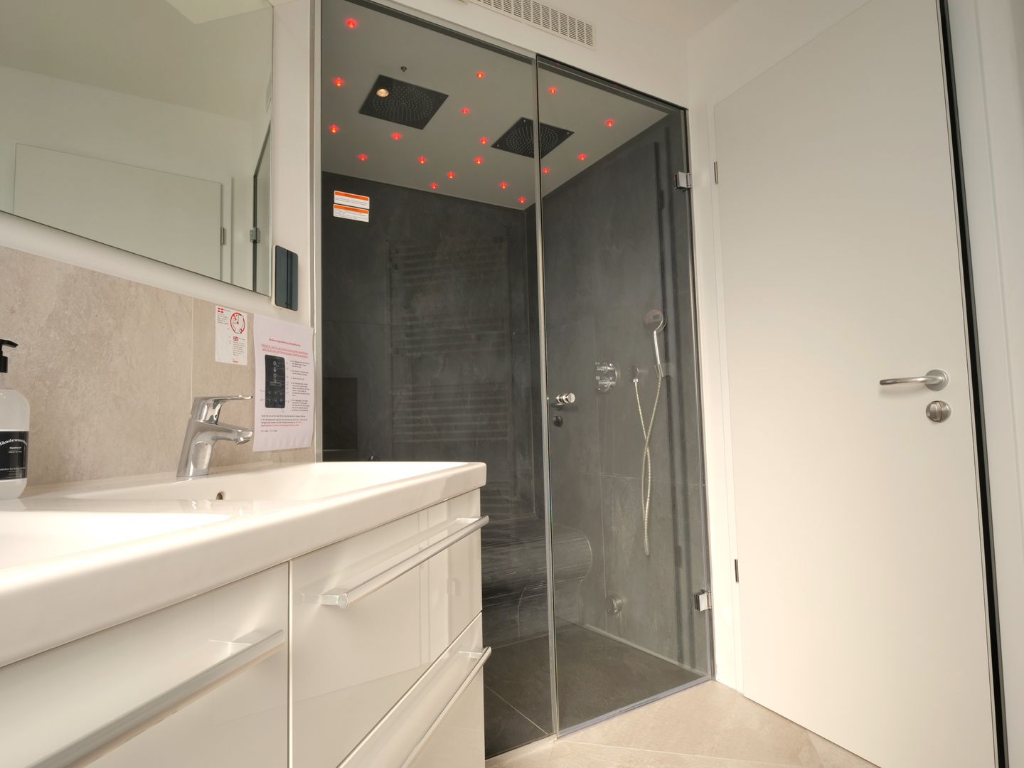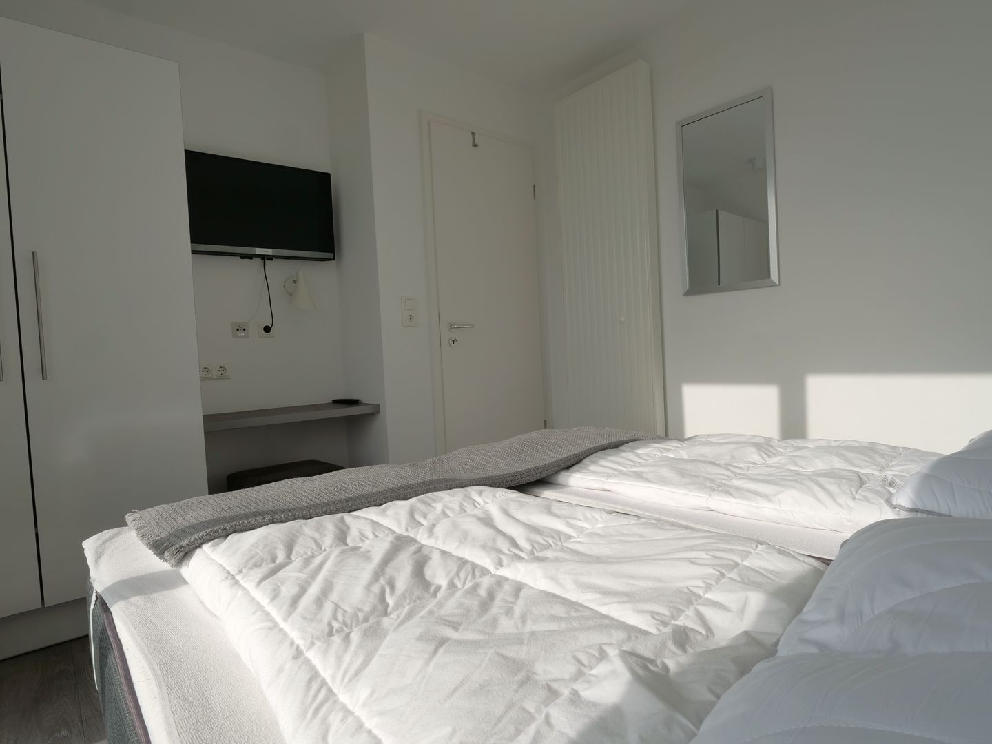 Die Ferienwohnung erstreckt sich über 4 lichtdurchflutete Zimmer, darunter 3 einladende Schlafzimmer, die mit gemütlichen Betten sowie jeweils einem Flachbild-TV ausgestattet sind und dir eine erholsame Nachtruhe garantieren. Das elegante Badezimmer mit einer bodengleichen Doppel-Regendusche, die auch als Dampfsauna genutzt werden kann, und einem Föhn sorgt dafür, dass du nach einem langen Tag am Strand erfrischt in den Abend starten kannst.