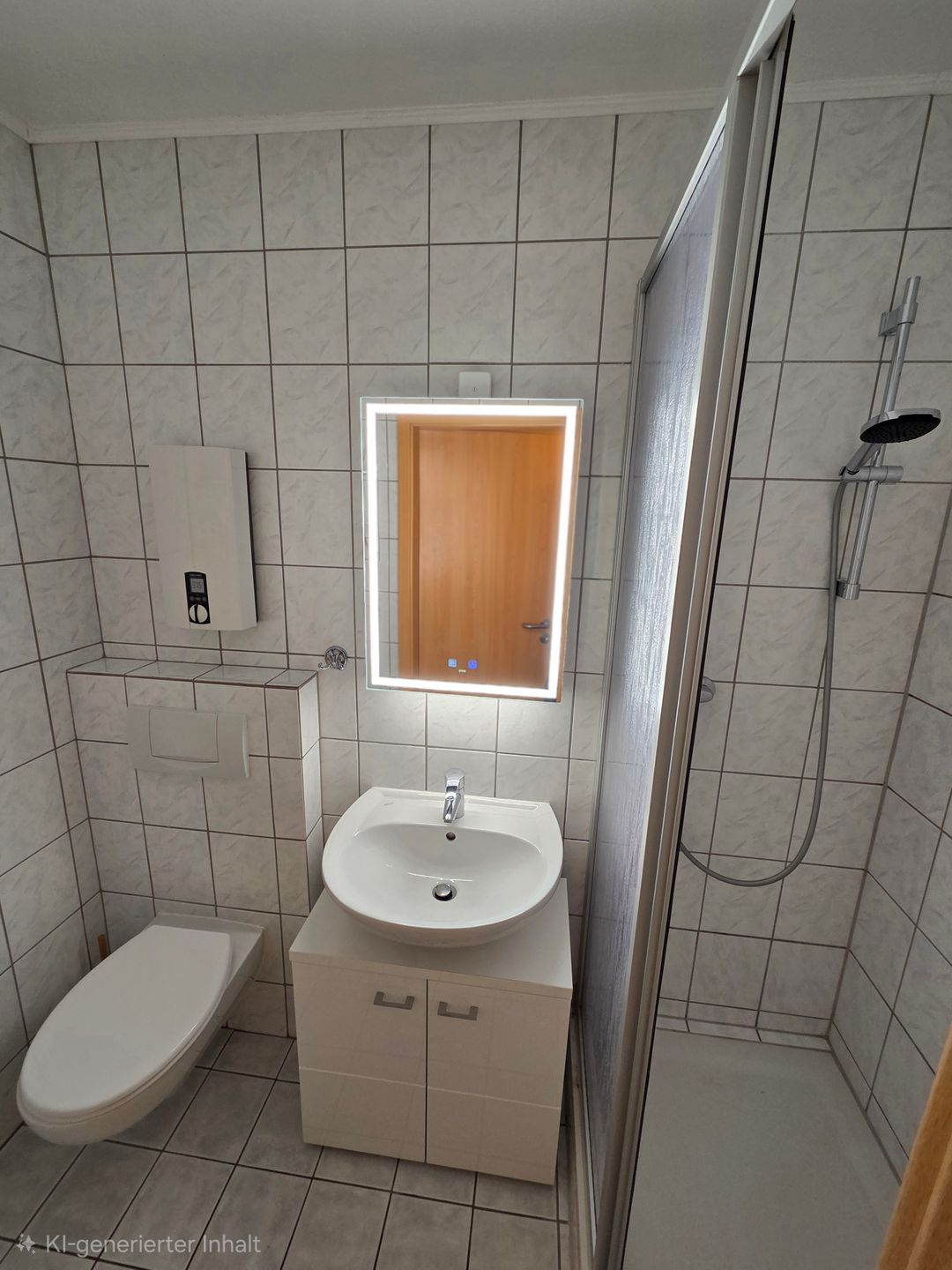 Das Badezimmer ist mit einer Dusche, WC, Waschbecken, Kosmetikspiegel sowie einem Haartrockner ausgestattet.