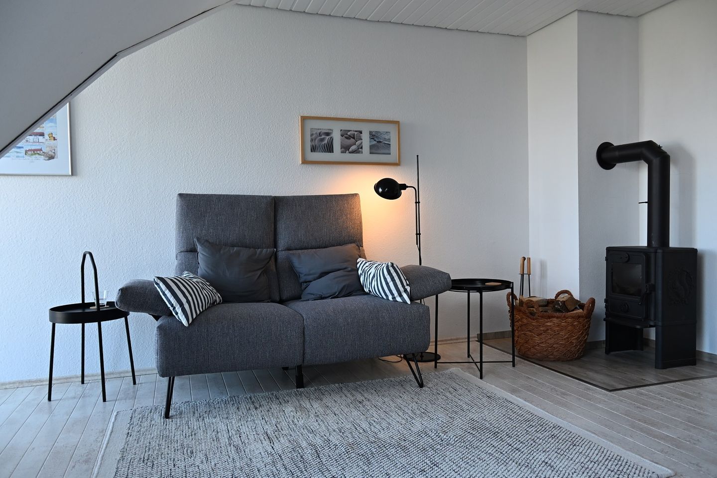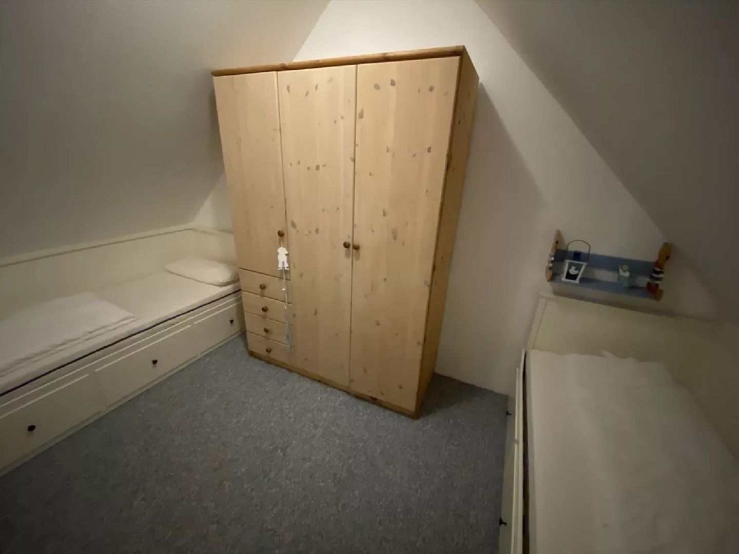 Die Wohnung ist mit schnellem WLAN-Internet ausgestattet und verfügt über zwei Schlafzimmer, jeweils mit Doppelbett, ein im Dezember 2023 vollständig renoviertes modernes Duschbad und ein Wohnzimmer mit Küchenzeile, die mit einem Elektroherd mit Cerankochfeld und einem Geschirrspüler ausgestattet ist. Das Schlafzimmer im Dachgeschoss ist für Kleinkinder zu nutzen; die Treppe nach unten kann mit einem Gitter gesichert werden. Oben befindet sich ein mit einem zur Ostsee ausgerichteten großen Fenster ausgestattetes Extrazimmer mit Doppelbett, Flachbildernseher mit DVB/T2-HD-Empfang/Apple-TV und einem Lounge-Sessel, so dass Sie aussuchen können, wo Sie schlafen und relaxen möchten. Vorhanden sind außerdem ein großer moderner Smart-TV mit Satellitenempfang und ein Radio. Der zur Ostsee hin ausgerichtete, mit Holzbohlen belegte Balkon kann zur Hälfte genutzt werden und ist mit einem kleinem Tisch und 2 Gartenstühlen möbliert. Münz- Waschmaschine und Münz-Trockner sind im Haus vorhanden.