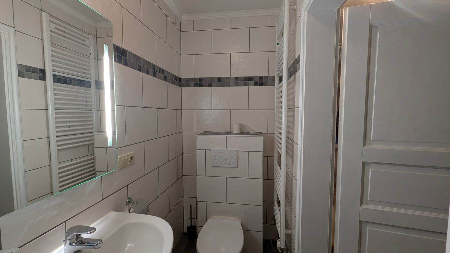 Die geschlossene Küche ist umfassend eingerichtet und eignet sich ideal für Selbstversorger. Zur Ausstattung gehören Ceranherd, Backofen (elektrisch), Kühlschrank mit Gefrierfach, Spülmaschine sowie Küchenutensilien, Geschirr und Besteck. Außerdem stehen Kaffeemaschine, Wasserkocher, Toaster und Eierkocher bereit. Ein Esstisch und ein separater Essbereich schaffen einen angenehmen Rahmen für gemeinsame Mahlzeiten.