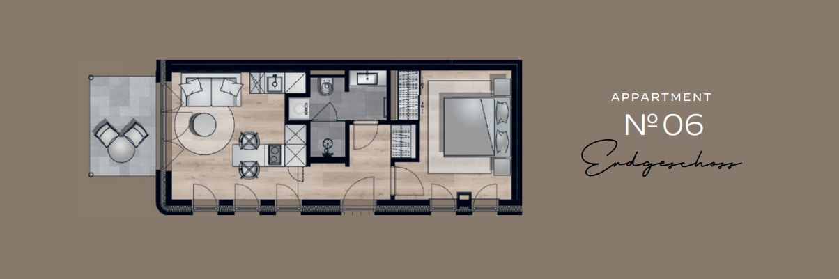 Das Schlafzimmer verfügt über ein komfortables, 180x200 cm großes Doppelboxspringbett der Marke Schramm, sowie Verdunkelungsmöglichkeiten für eine angenehme Nachtruhe. Ein helles Badezimmer mit bodengleicher Dusche, WC und Haartrockner sorgt für frische Momente.