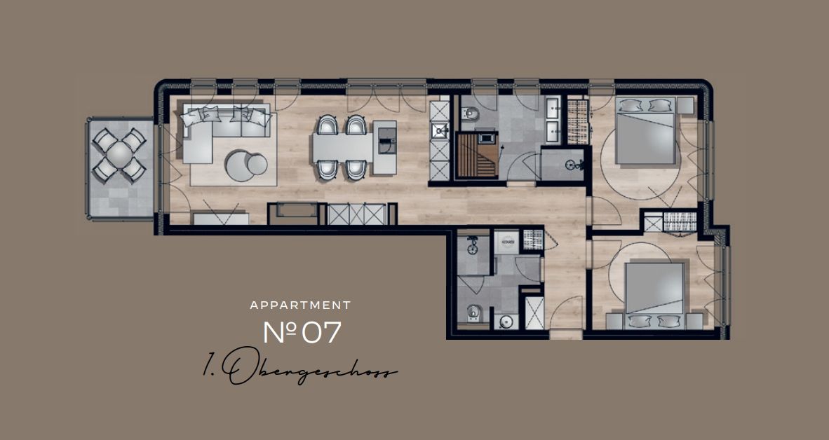 Die individuelle Ausstattung sorgt für höchsten Komfort und eine angenehme Wohlfühlatmosphäre. Mit zwei stilvoll eingerichteten Schlafzimmern, ausgestattet mit 180x200 cm großen Doppelboxspringbetten der Marke Schramm, sowie zwei modernen Badezimmern, findest du hier genügend Raum zum Entspannen und Erholen. Lehne dich zurück und genieße die entspannende Wirkung der Finnischen Sauna.