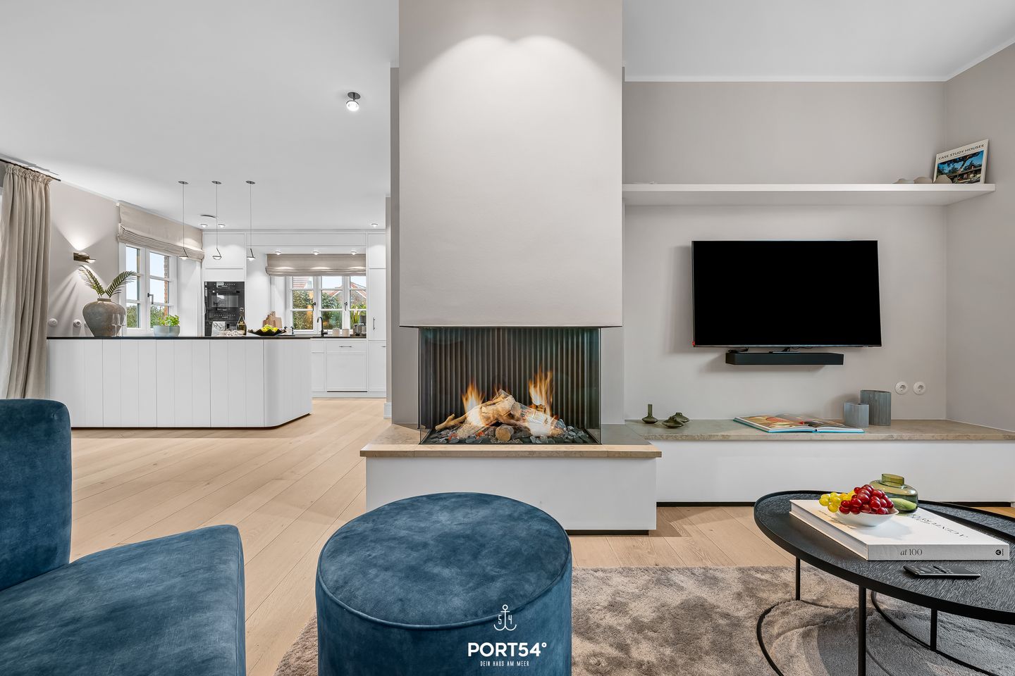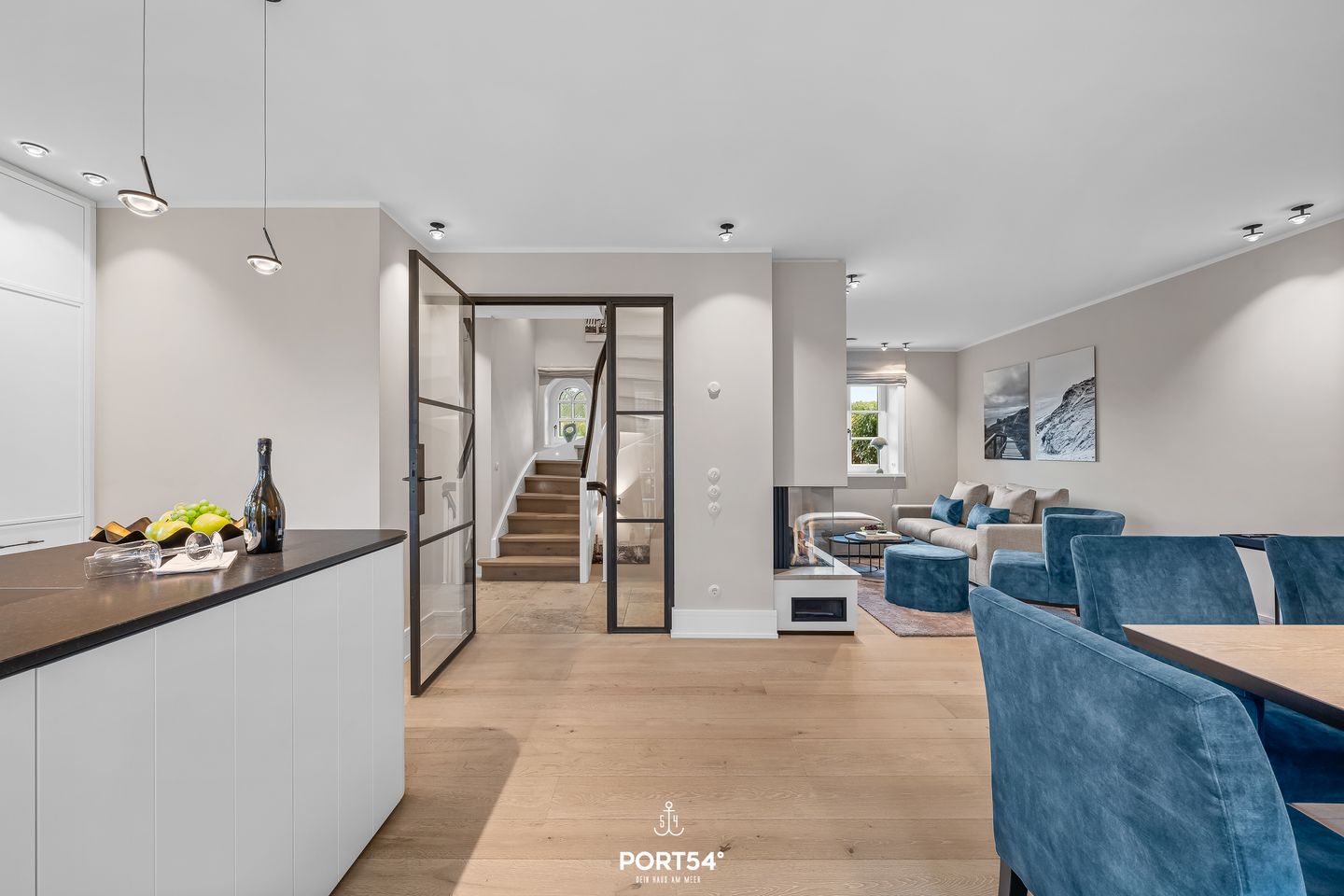 Das Haus erstreckt sich über drei Etagen und verbindet moderne Haustechnik mit einer warmen, wohnlichen Atmosphäre. Herzstück des Hauses ist der offene Wohnbereich, in dem Wohnzimmer, Essbereich und Küche harmonisch ineinander übergehen. Parkettböden in Wohn- und Schlafzimmern sorgen für ein angenehmes Wohngefühl, während Fußbodenheizung und Wärmepumpe ganzjährig für behagliche Temperaturen sorgen. Eine gemütliche Sofaecke lädt zu entspannten Abenden ein, besonders wenn im Kaminofen ein Feuer brennt und eine stimmungsvolle Atmosphäre schafft.