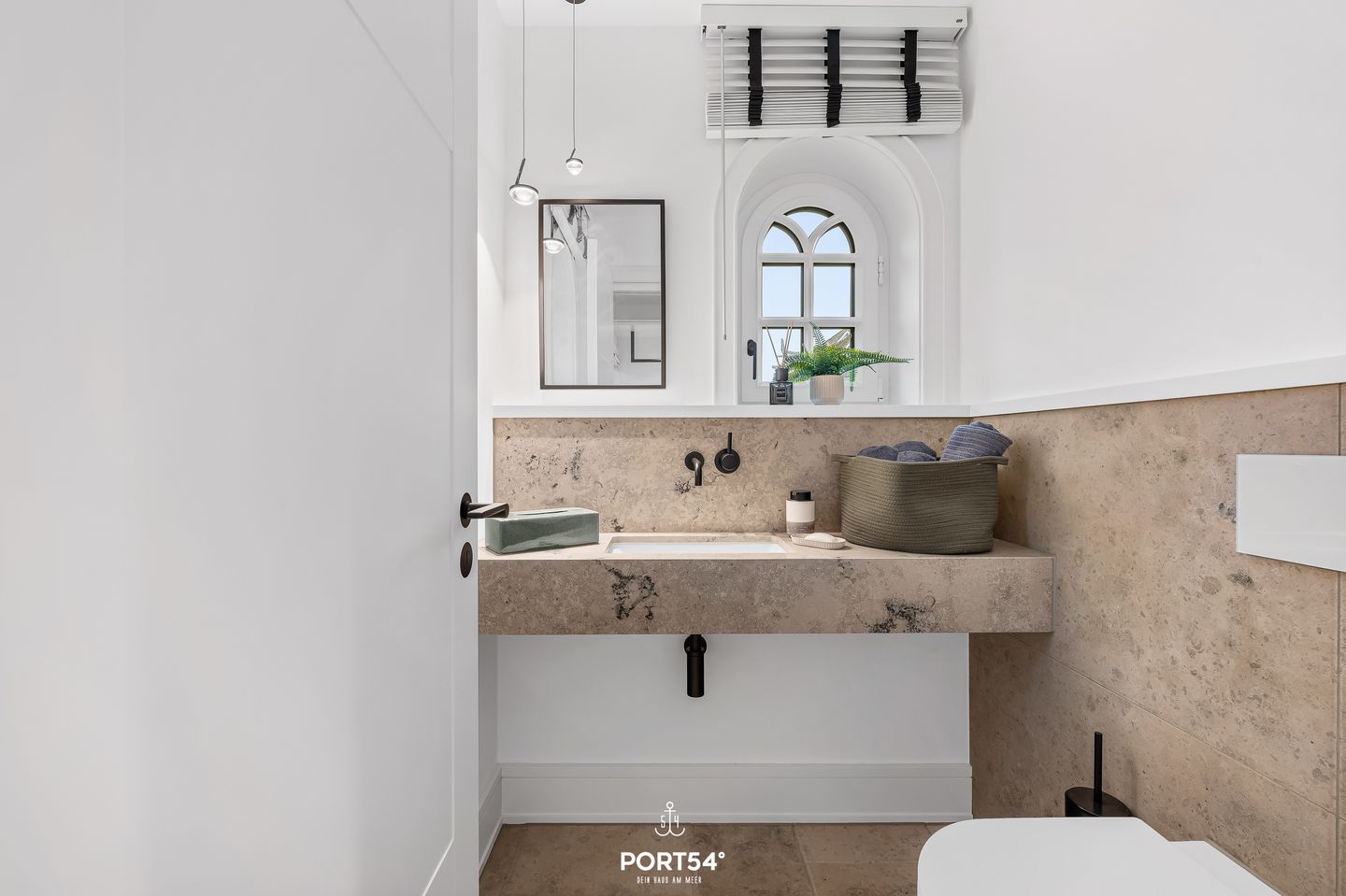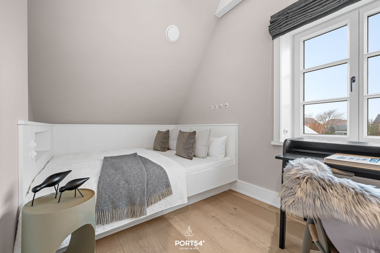 Ein besonderes Highlight des Hauses ist der private Wellnessbereich mit Sauna und Ruheraum. Nach einem langen Spaziergang am Königshafen, einer Fahrradtour über die Insel oder einem Tag am Meer bietet dieser Bereich ideale Entspannung. Die beiden modernen Badezimmer verfügen über großzügige, bodengleiche Duschen und Fenster für angenehmes Tageslicht. Für längere Aufenthalte stehen außerdem Waschmaschine und Trockner zur Verfügung. Bettwäsche, Handtücher und Geschirrhandtücher werden gestellt.