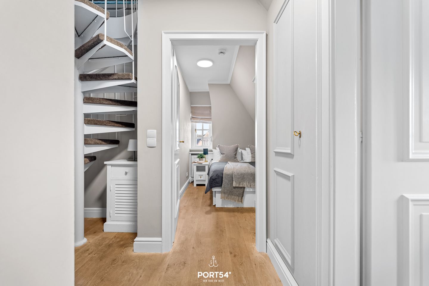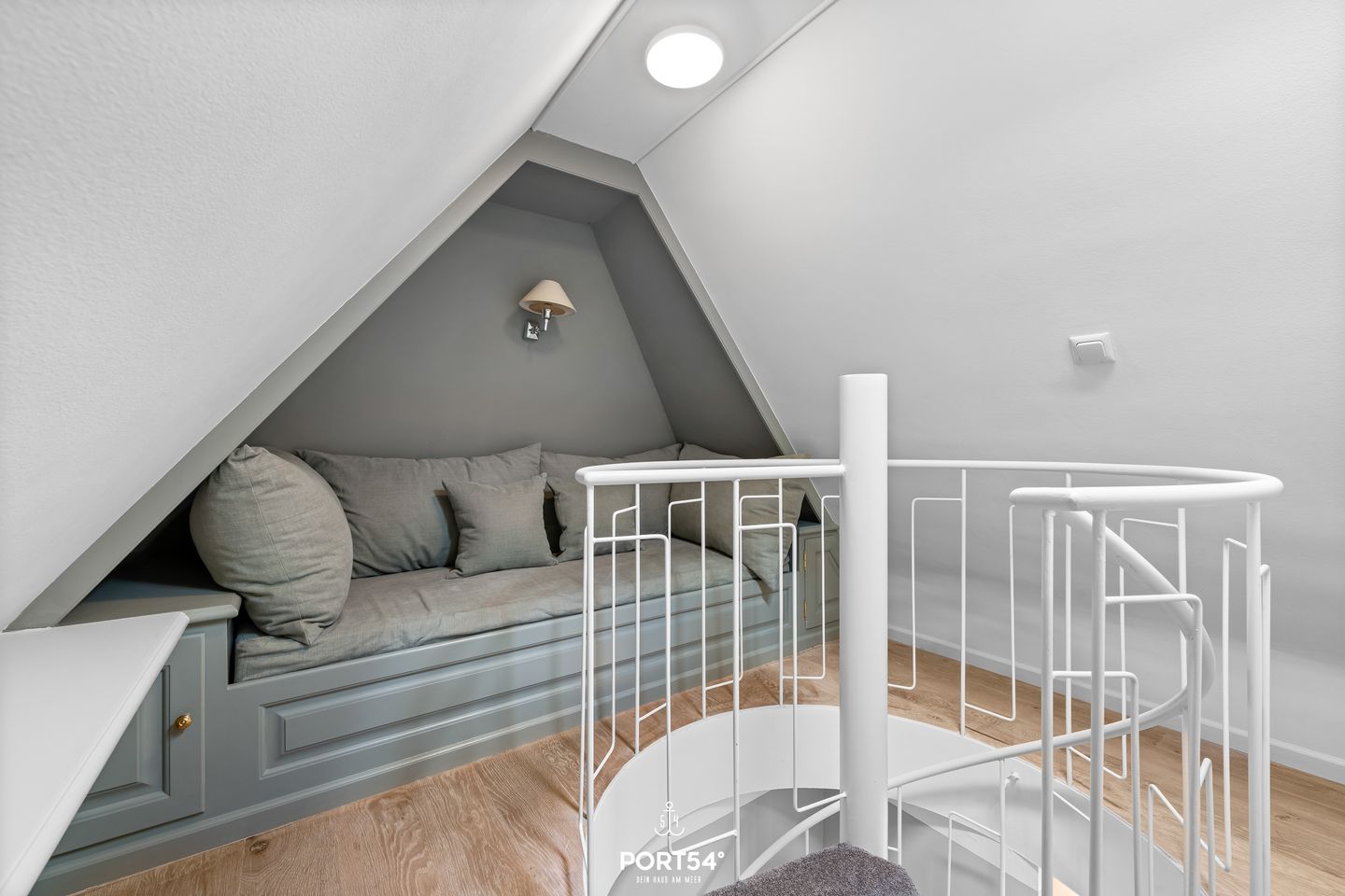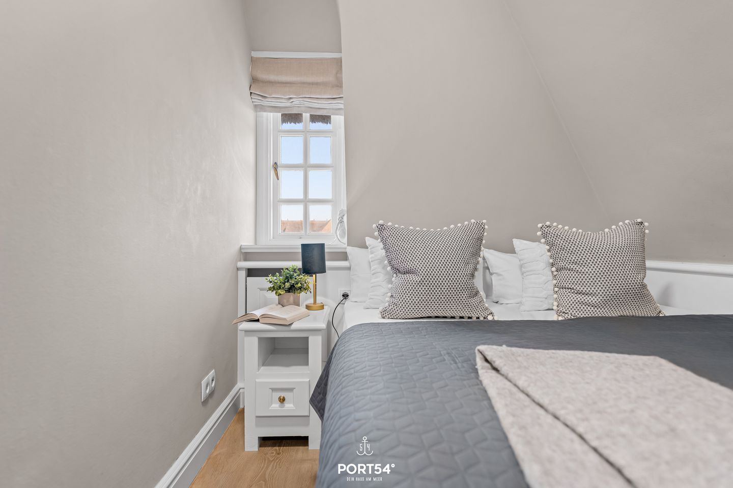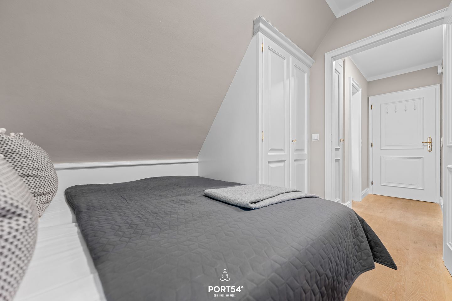 Das Schlafzimmer überzeugt mit einem kuscheligen Doppelbett (160 x 200 cm) und einem eingebauten Kleiderschrank, der viel Stauraum bietet und für Ordnung sorgt. Verdunkelungsmöglichkeiten sorgen dafür, dass du auch im hellen Nordseelicht angenehm schlafen kannst.