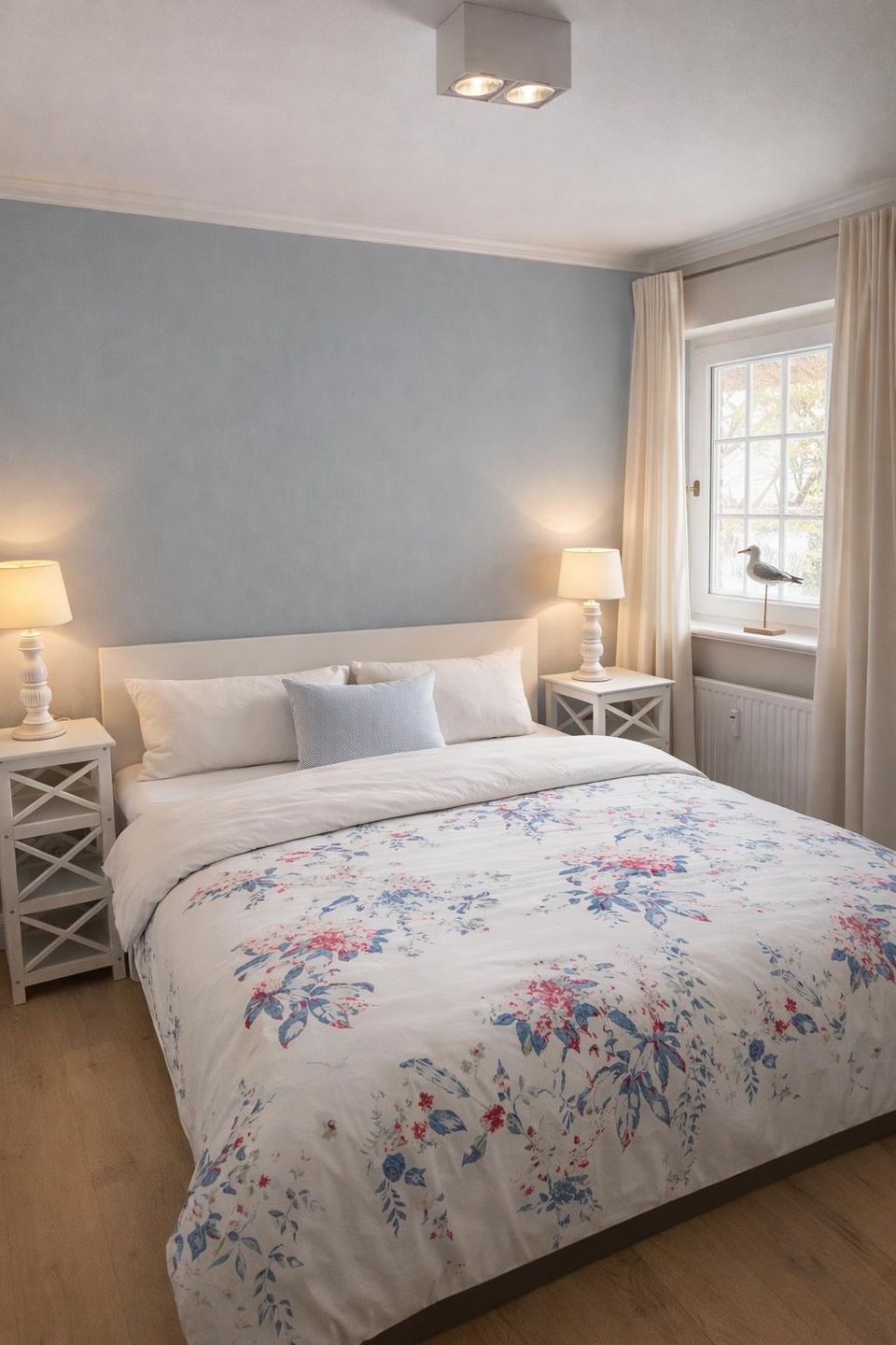 Schon beim Eintreten spürst du die harmonische Verbindung aus Gemütlichkeit und nordischem Charme. Das separate Schlafzimmer mit komfortablem Doppelbett (180 x 200 cm) verspricht erholsame Nächte, während der geschmackvoll gestaltete Wohnbereich mit Sofa, Sessel, Essplatz und digitalem TV ideale Voraussetzungen für entspannte Abende bietet. Selbstverständlich steht dir kostenfreies WLAN zur Verfügung. Praktische Details wie Ganzkörperspiegel, Garderobe, Wäscheständer und vieles mehr machen deinen Aufenthalt besonders angenehm.