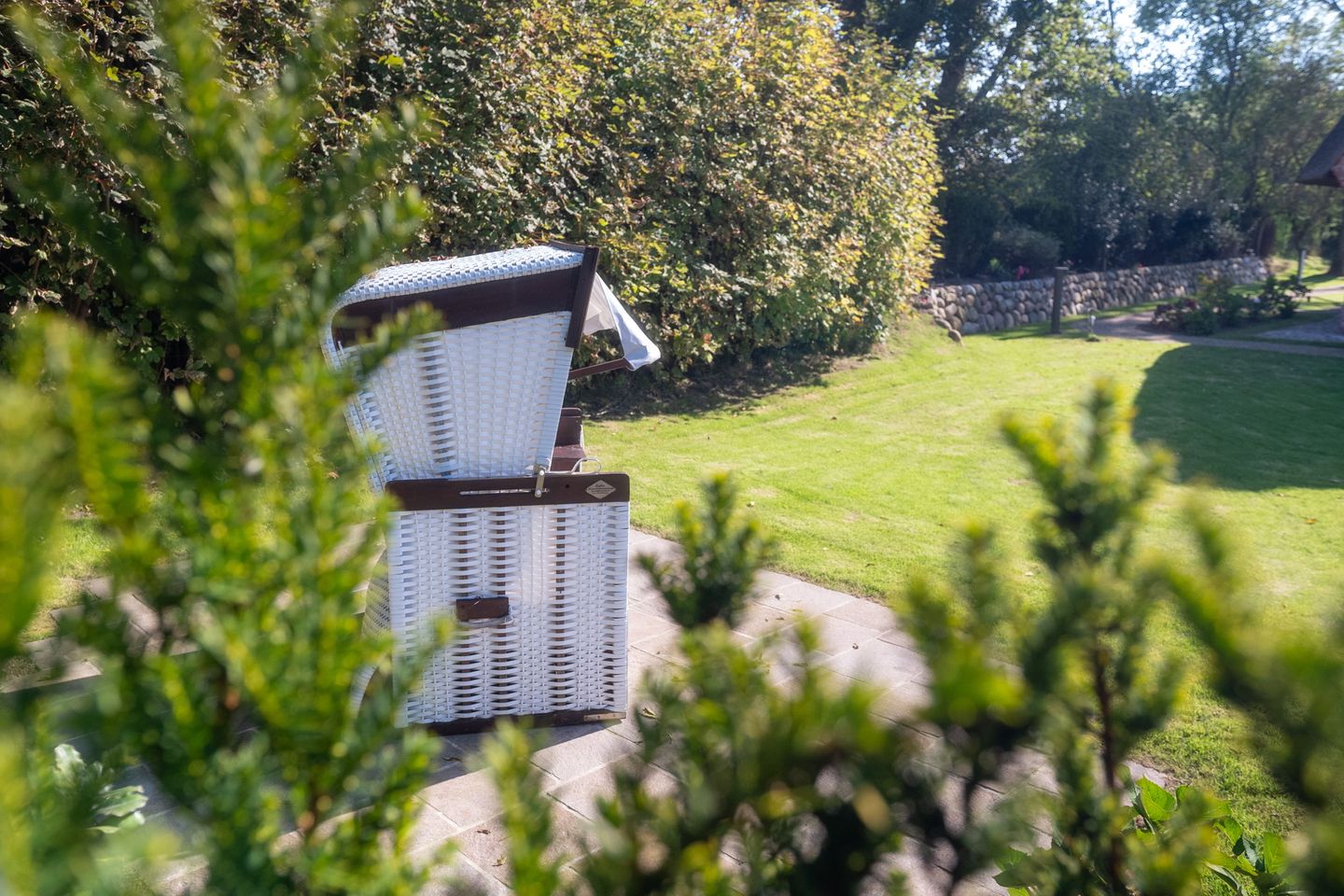 Der Außenbereich bietet zwei Terrassen mit Gartenmöbeln und Strandkorb, einen privaten Garten sowie zwei Parkplätze. Sandstrand und Wattenmeer sind nur ca. 2 km entfernt, Restaurants etwa 400 m, Einkaufsmöglichkeiten finden sich in rund 3 km Entfernung. Sportlich Aktive finden zahlreiche Möglichkeiten wie Radfahren, Wandern oder Golf (ca. 4,5 km entfernt).