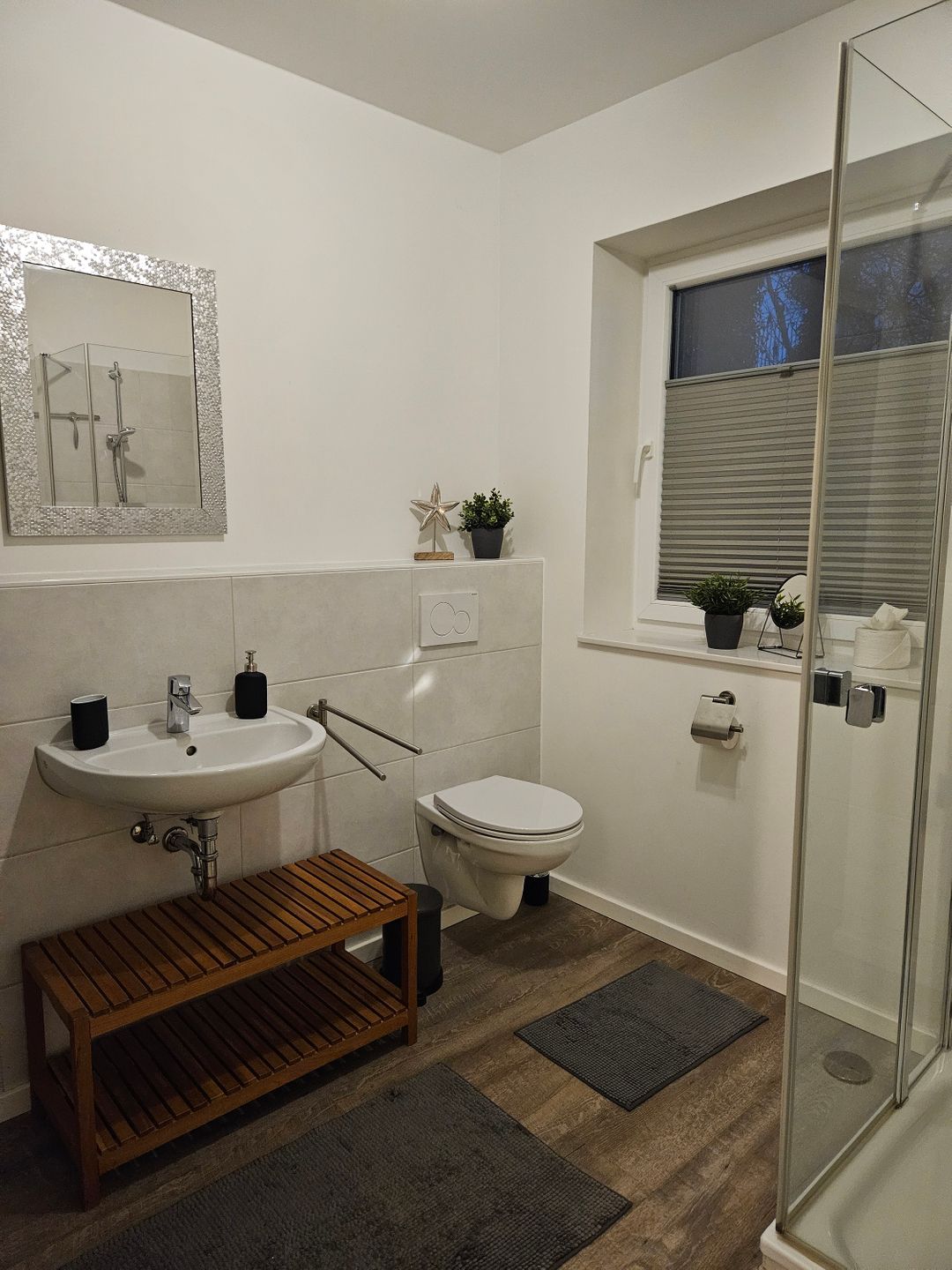 Die Ferienwohnung ist zentral beheizt und ganzjährig nutzbar. Sichtschutz an allen Fenstern, ein Rauchmelder, Wäscheständer, Staubsauger sowie Bügeleisen und Bügelbrett sorgen für Komfort und Sicherheit im Alltag. Für Unterhaltung sorgen neben dem WLAN auch Bücher und Spiele – selbst Regentage werden nicht langweilig.