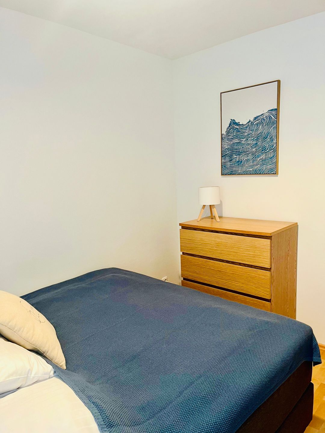 Das Badezimmer bietet eine Dusche mit Duschwanne, Waschbecken und WC sowie einem Kosmetikspiegel – alles, was Sie für Ihren Aufenthalt benötigen. Besonders komfortabel ist auch die Möglichkeit der Nutzung einer Waschmaschine und eines Trockners (gegen Gebühr), was Ihnen zusätzliche Flexibilität während Ihres Aufenthalts bietet.