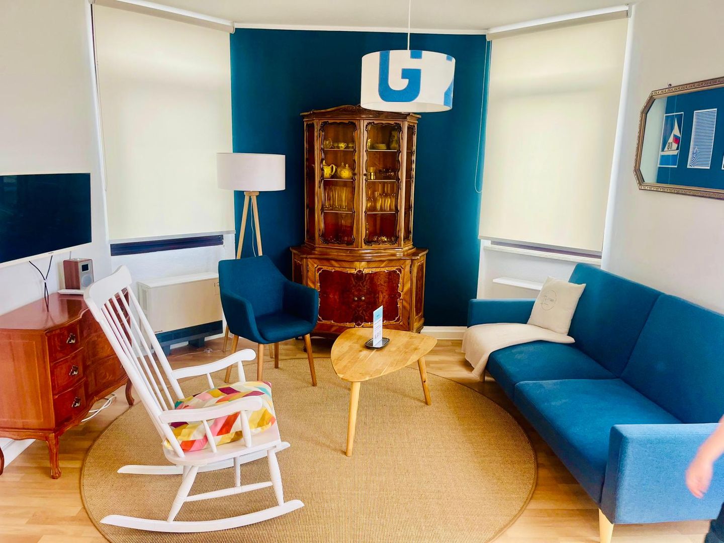 Die Ferienwohnung verfügt über ein Schlafzimmer mit Doppelbett (160 x 200 cm), ein Murphy-Bett im Wohnbereich und einer bequemen Sofaecke mit TV. Ein helles und einladendes Wohnzimmer mit Zugang zum Balkon lädt zum Verweilen ein und bietet Ihnen einen Meerblick, über den Sie die Wellen der Ostsee beobachten können. Stellen Sie sich vor, früh morgens mit einer Tasse Kaffee auf dem Balkon zu sitzen und den Tag mit Blick auf die unendliche Weite des Umgebung zu beginnen – einfach herrlich!