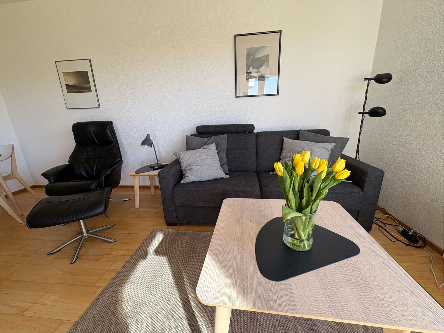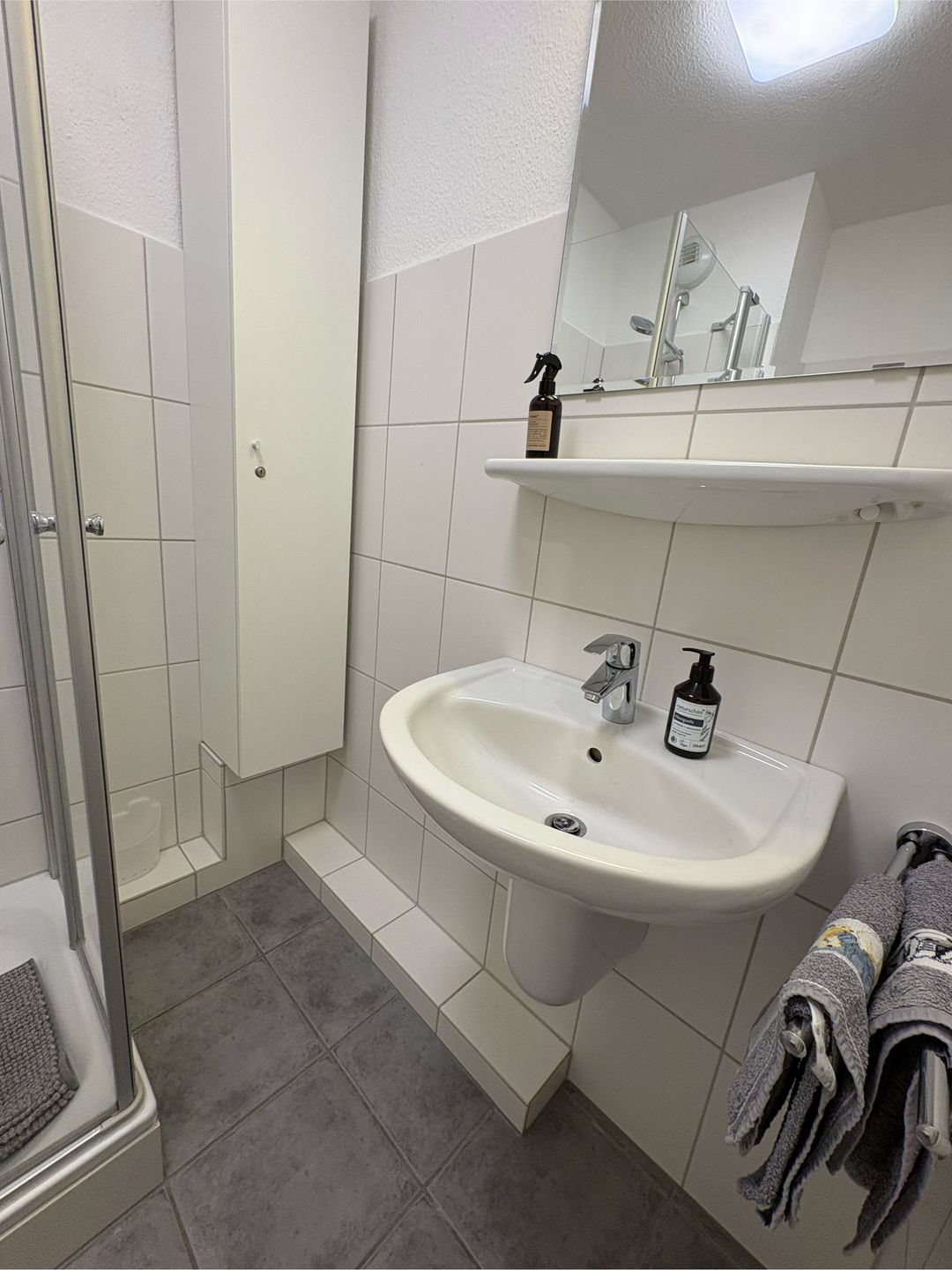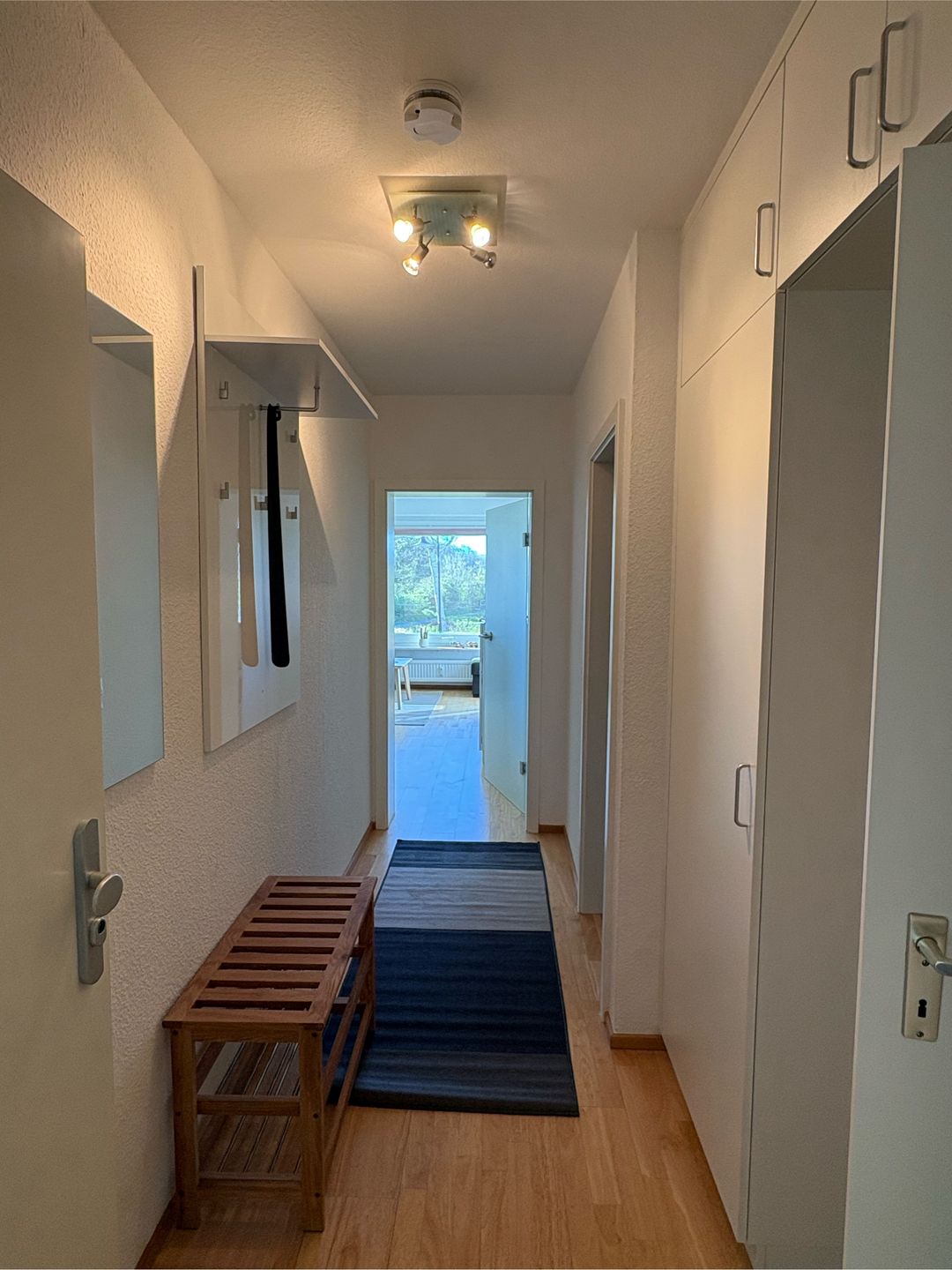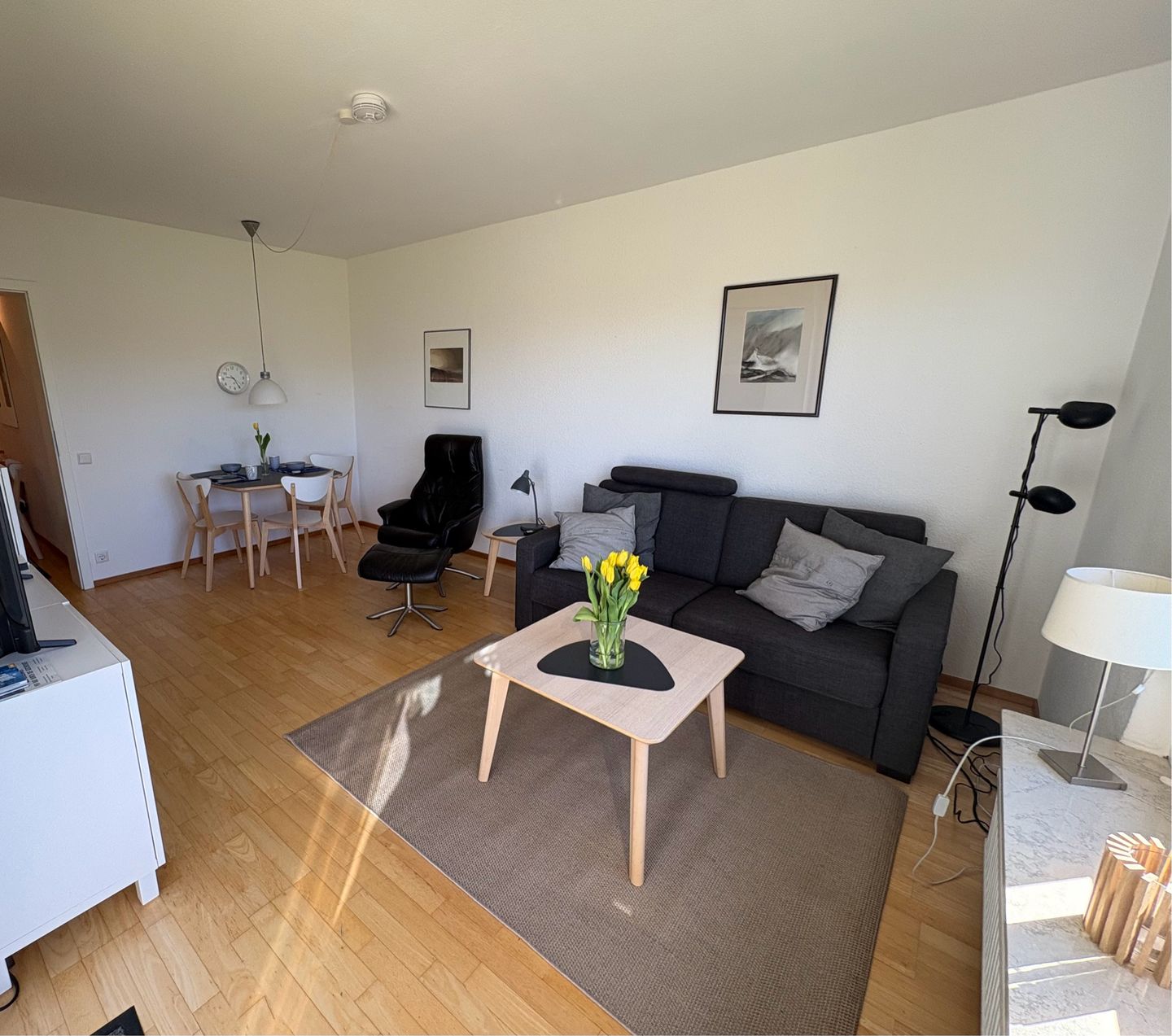 Drinnen erwartet dich alles, was du brauchst, um dich wohlzufühlen. Die Wohnung ist mit Zentralheizung ausgestattet, hat ein modernes Bad mit bodengleicher Dusche sowie Rauchmelder für deine Sicherheit. Für entspannte Abende gibt’s einen Fernseher mit digitalem Anschluss und natürlich WLAN. Im Wohnbereich kannst du es dir auf dem Sofa gemütlich machen oder gemeinsam am Esstisch essen und den Tag ausklingen lassen.