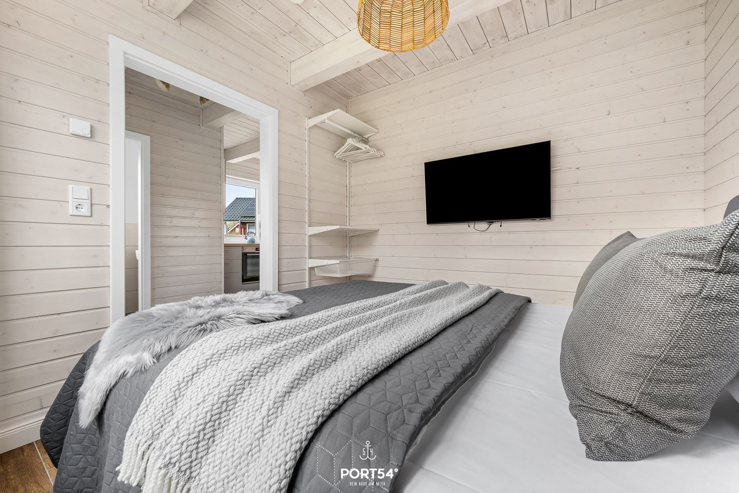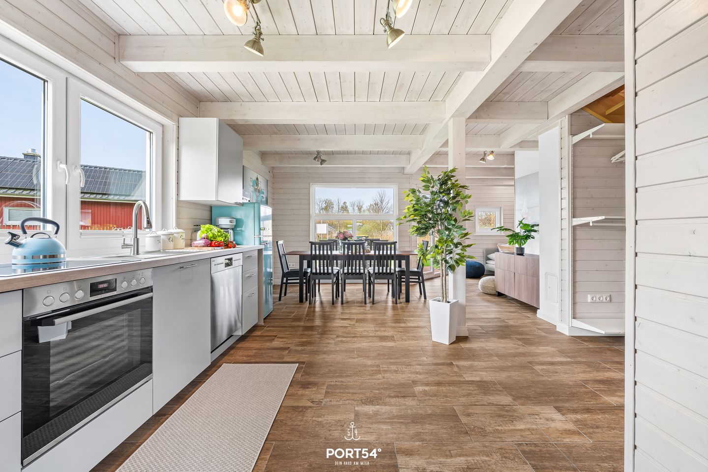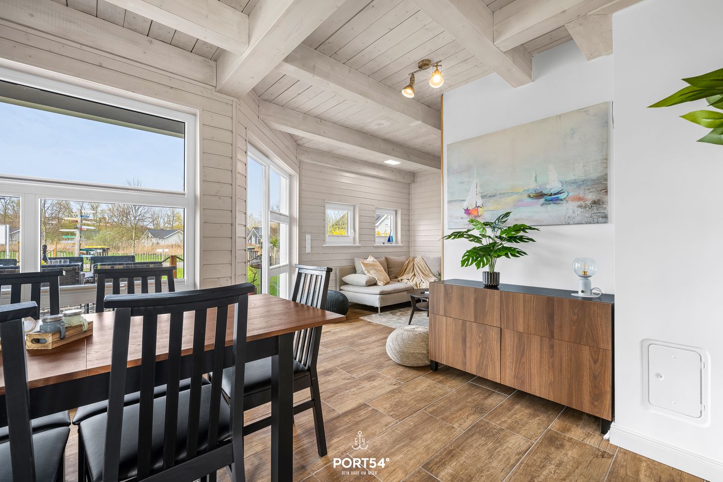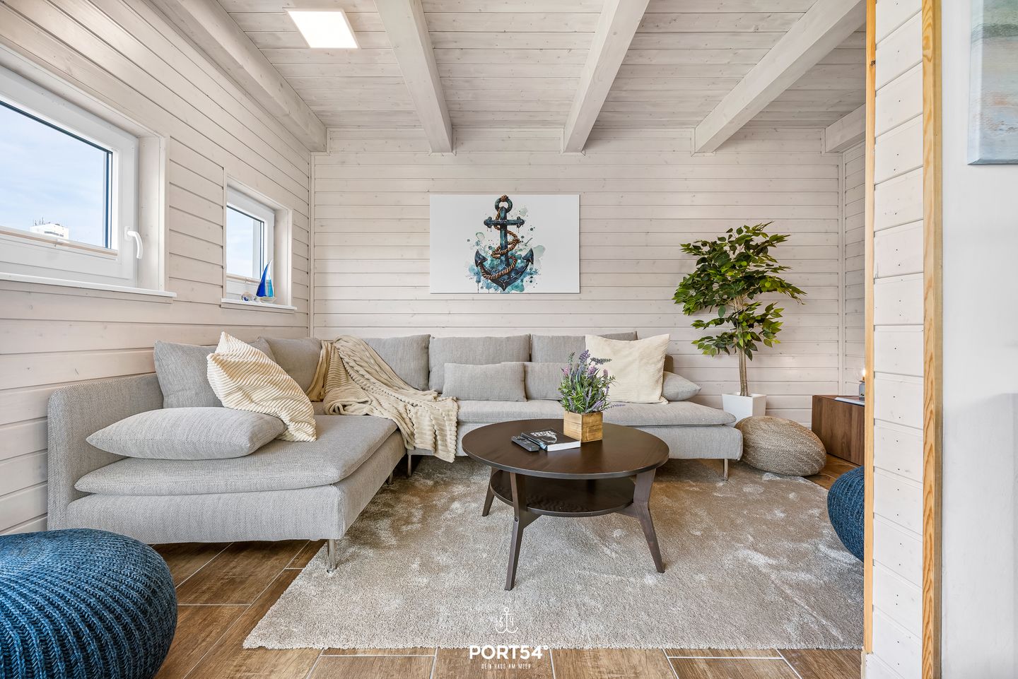 Im Innenbereich erwartet Sie eine wohnliche und komfortable Ausstattung. Das Wohnzimmer mit Ecksofa, 65-Zoll-TV und HiFi-Anlage schafft einen angenehmen Rahmen für gemeinsame Stunden. WLAN mit einer Internetgeschwindigkeit bis zu 100 Mbit/s ermöglicht auch während des Urlaubs komfortable Online-Nutzung. Der kontaktlose Check-in und Check-out sorgt für zusätzliche Flexibilität bei der An- und Abreise.
