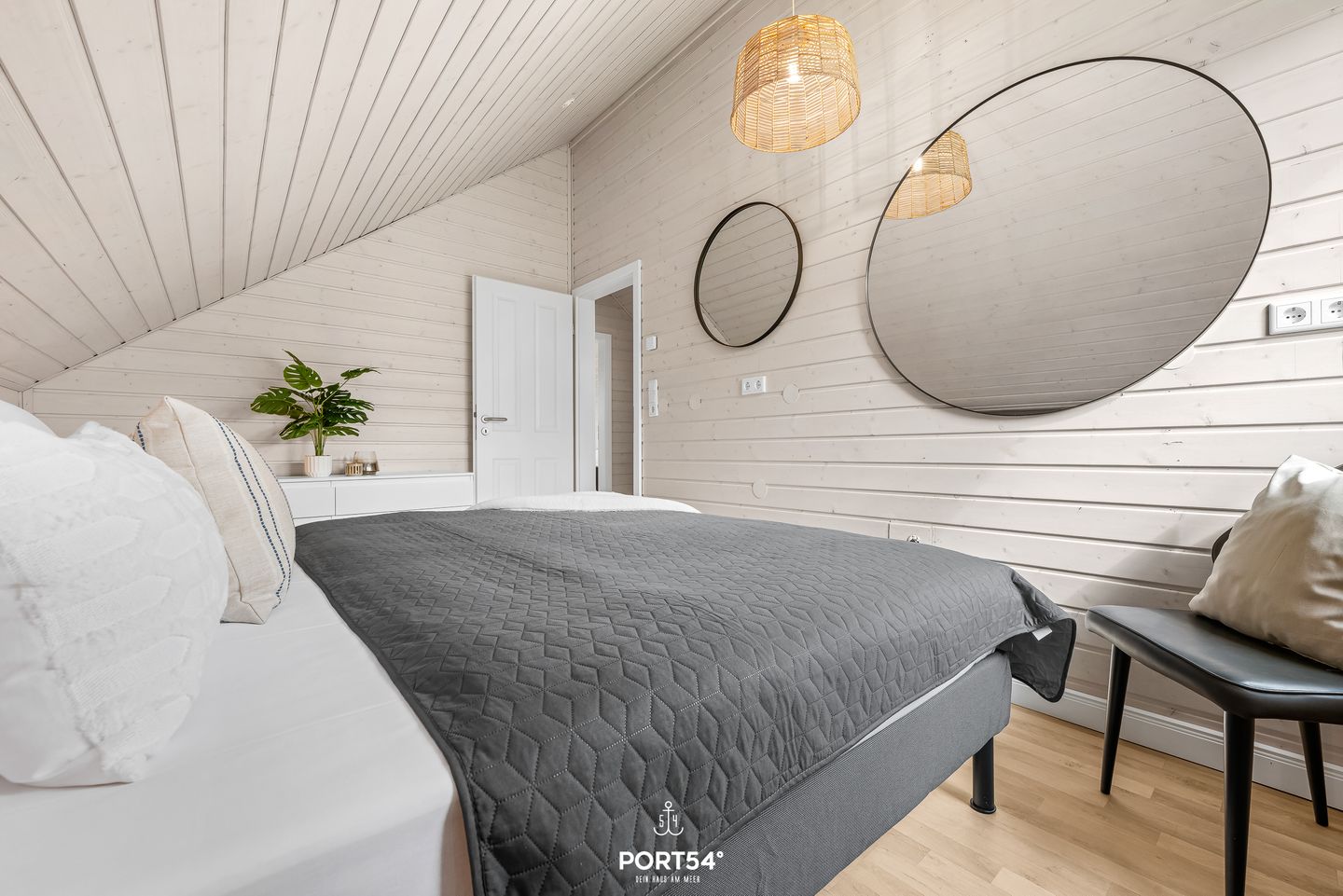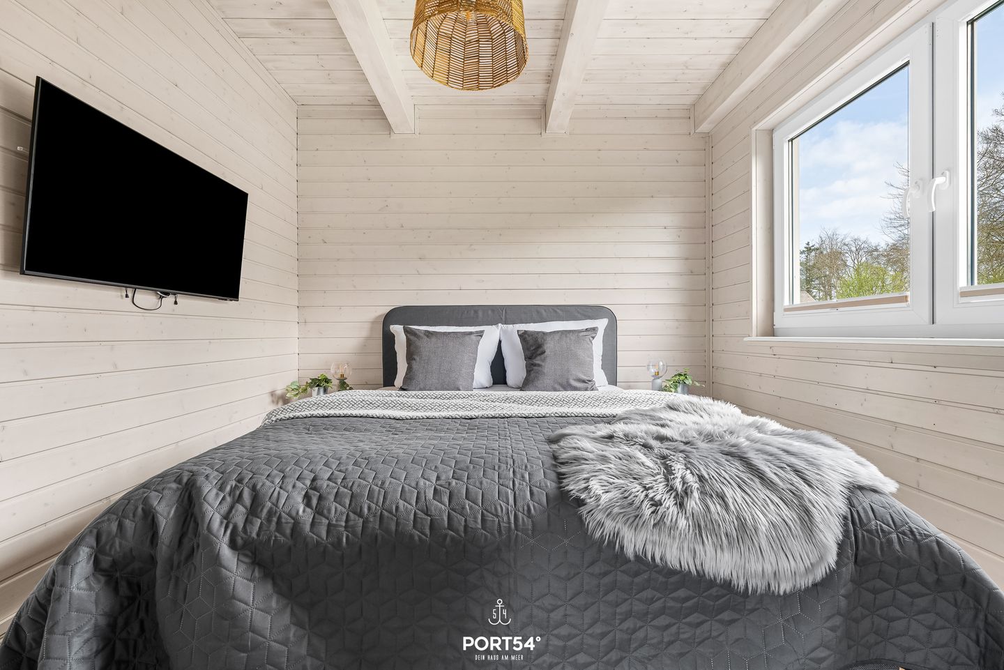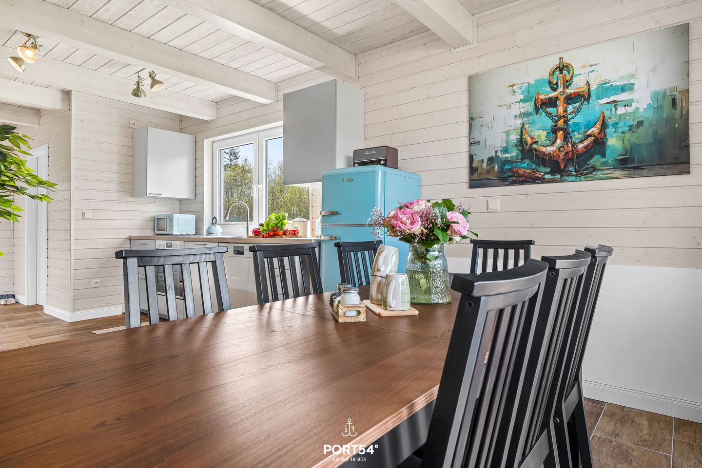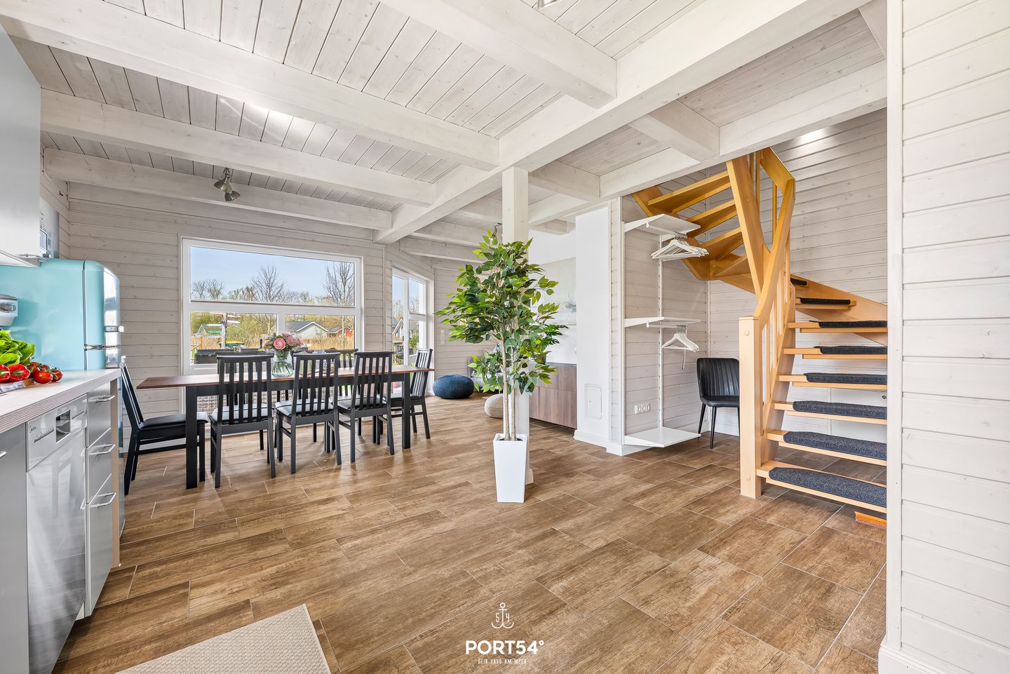 Im Innenbereich erwartet Sie eine wohnliche und komfortable Ausstattung. Das Wohnzimmer mit Ecksofa, 65-Zoll-TV und HiFi-Anlage schafft einen angenehmen Rahmen für gemeinsame Stunden. WLAN mit einer Internetgeschwindigkeit bis zu 100 Mbit/s ermöglicht auch während des Urlaubs komfortable Online-Nutzung. Der kontaktlose Check-in und Check-out sorgt für zusätzliche Flexibilität bei der An- und Abreise.