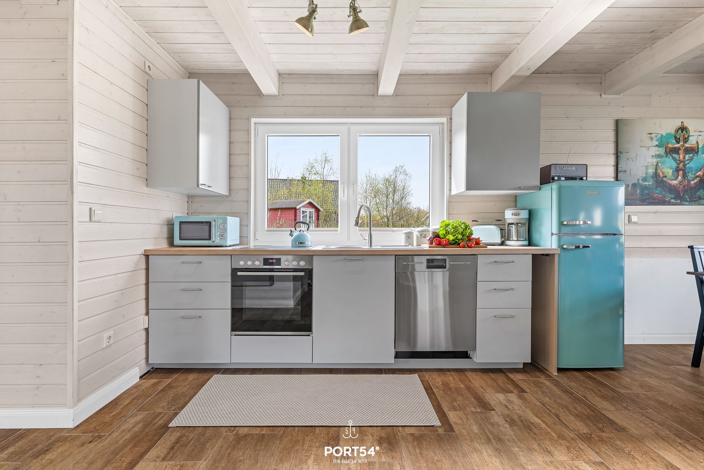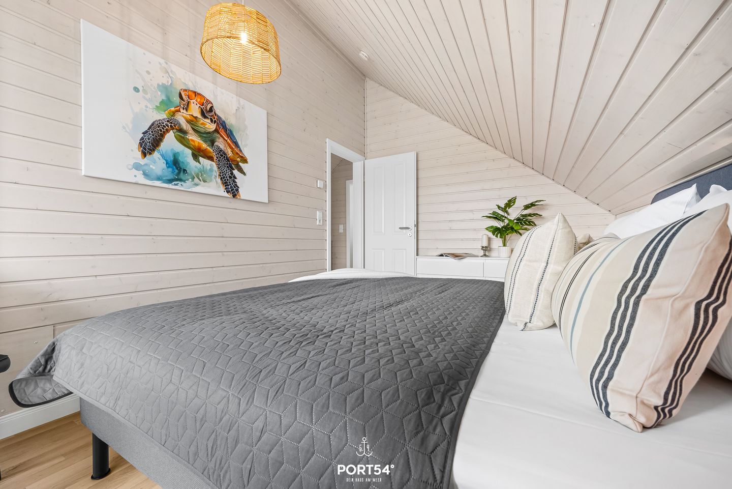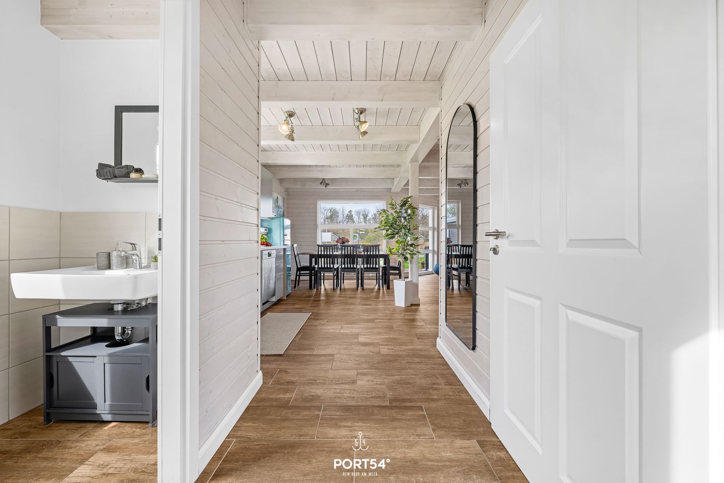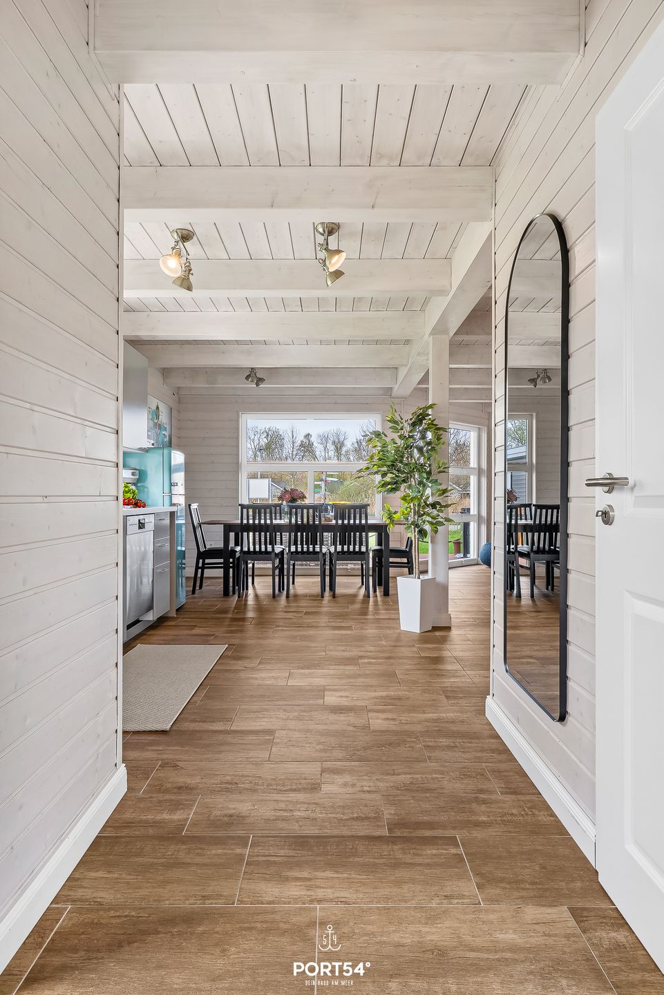 Im Innenbereich erwartet Sie eine wohnliche und komfortable Ausstattung. Das Wohnzimmer mit Ecksofa, 65-Zoll-TV und HiFi-Anlage schafft einen angenehmen Rahmen für gemeinsame Stunden. WLAN mit einer Internetgeschwindigkeit bis zu 100 Mbit/s ermöglicht auch während des Urlaubs komfortable Online-Nutzung. Der kontaktlose Check-in und Check-out sorgt für zusätzliche Flexibilität bei der An- und Abreise.