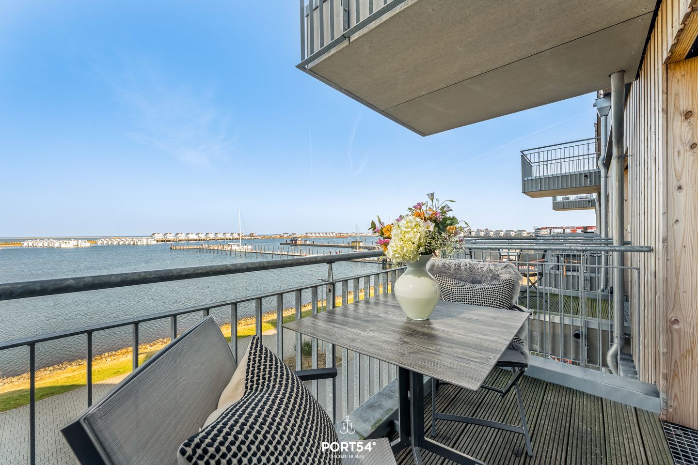 Das Appartement im zweiten Stock bietet Dir einen wunderschönen Blick auf das Meer und die maritime Umgebung – direkt vom Wohnzimmer und dem privaten Balkon aus.