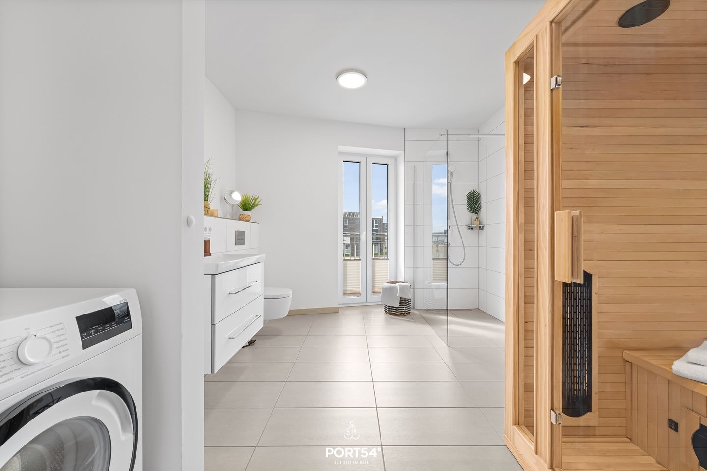 Das moderne Badezimmer ist mit einer bodengleichen Dusche, einem Haartrockner und einem Kosmetikspiegel ausgestattet. Ein besonderes Highlight ist die private Sauna, die Dir zu jeder Jahreszeit entspannte Wohlfühlmomente ermöglicht.