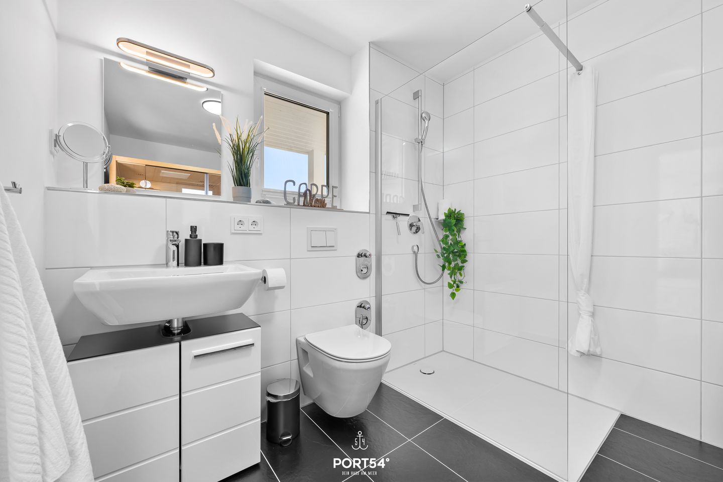 Dein privater Wellnessbereich erwartet Dich im exklusiven Badezimmer mit bodengleicher Dusche und eigener Infrarotkabine. Genieße wohltuende Entspannung nach einem Tag am Meer. Die zwei eigenen Terrassen mit bequemen Gartenmöbeln, Loungebereich, Rasenfläche und einem großen Weber Lumin Elektrogrill laden Dich zum Verweilen ein – ob für Grillabende, Gemüse garen, Fisch räuchern oder einfach nur zum Sonnen genießen.