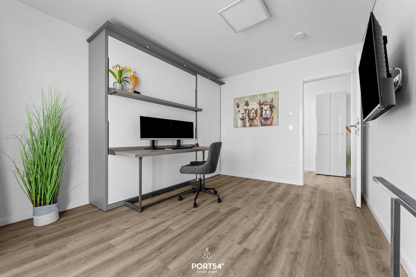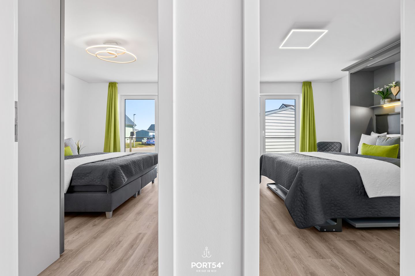 Zwei separate Schlafzimmer garantieren Dir erholsamen Schlaf. Schlafzimmer 1 ist mit einem großzügigen Boxspring-Doppelbett (180 × 200 cm) ausgestattet und bietet Dir Komfort pur. Schlafzimmer 2 ist flexibel nutzbar: Ein Schrankbett (160 × 200 cm), das tagsüber in einen hochwertigen Schreibtisch umgebaut werden kann, eignet sich ideal zum Arbeiten oder als Spielzone für Kinder. Beide Räume verfügen über Smart-TV, Kleiderschrank und Verdunklungsmöglichkeiten.