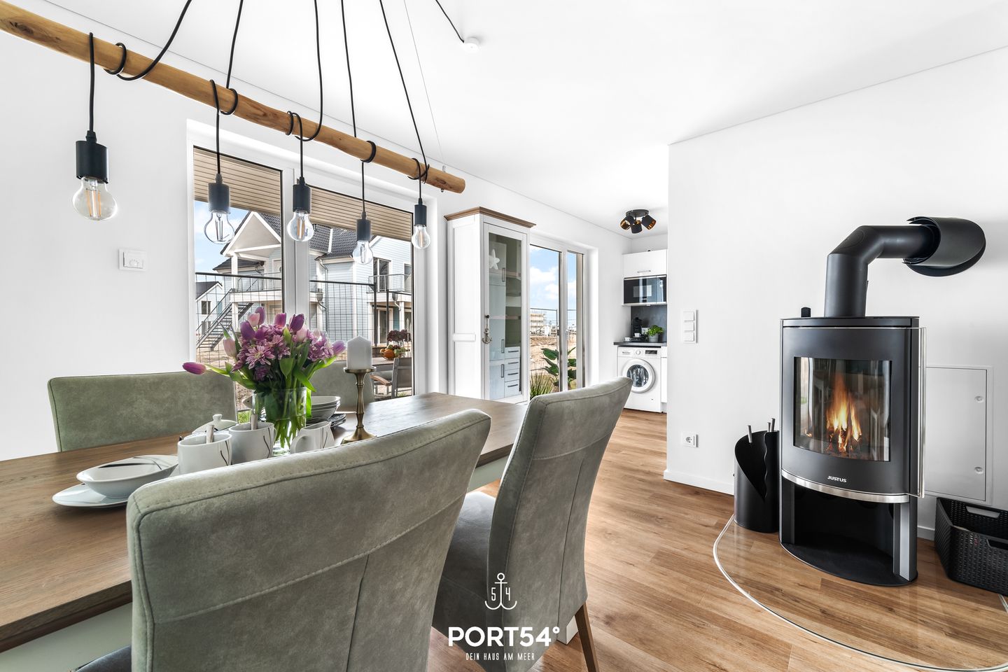 Abends kannst Du es Dir auf dem Sofa vor dem Flachbild-TV gemütlich machen, während der Kamin für eine mollige Wärme und eine behagliche Atmosphäre sorgt.