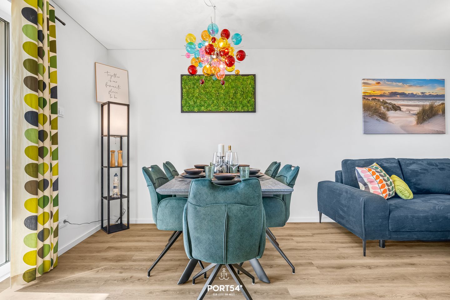 Die moderne, voll ausgestattete Küche ist harmonisch in den Wohnbereich integriert und bietet alles, was Sie für einen entspannten Aufenthalt benötigen: Spülmaschine, Herd mit Ceranfeld und Backofen, Mikrowelle sowie einen praktischen Waschtrockner. So lässt sich auch ein längerer Urlaub komfortabel gestalten.