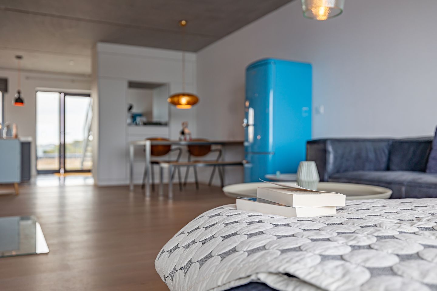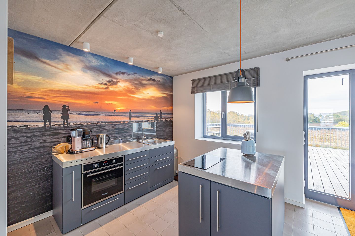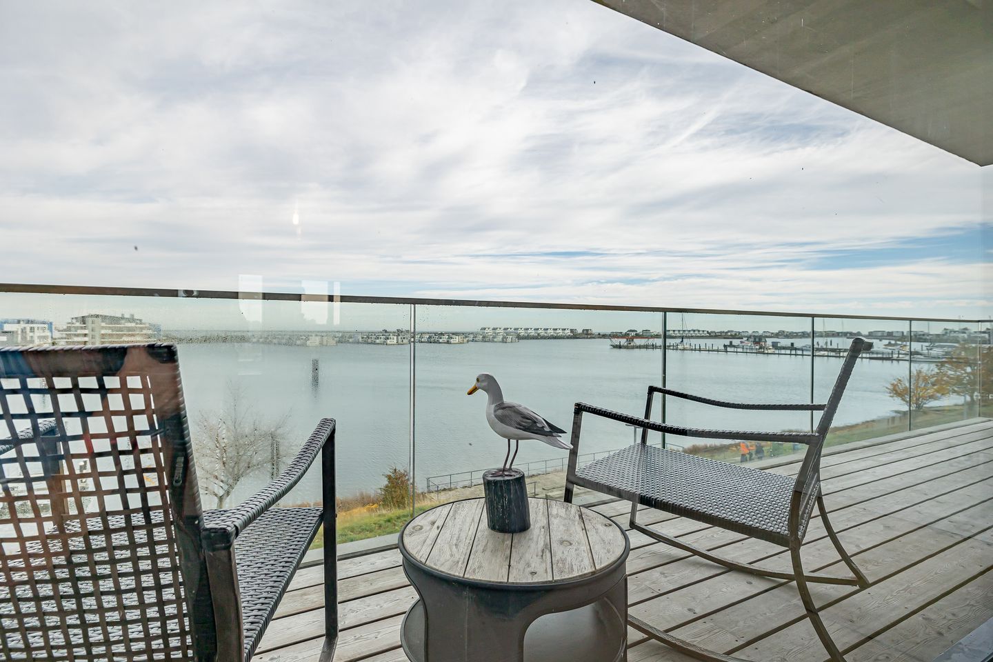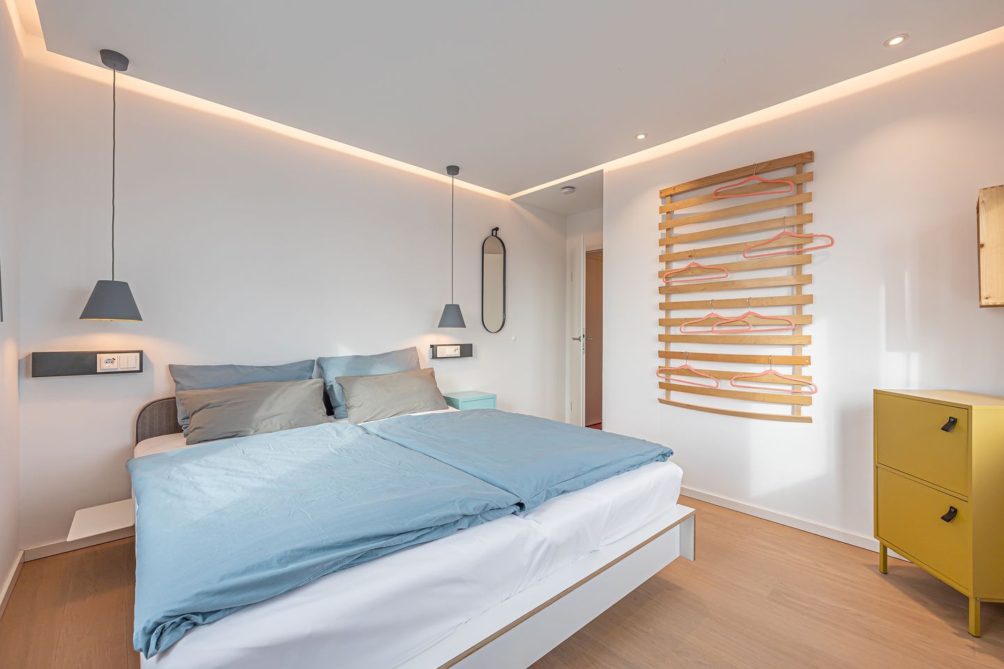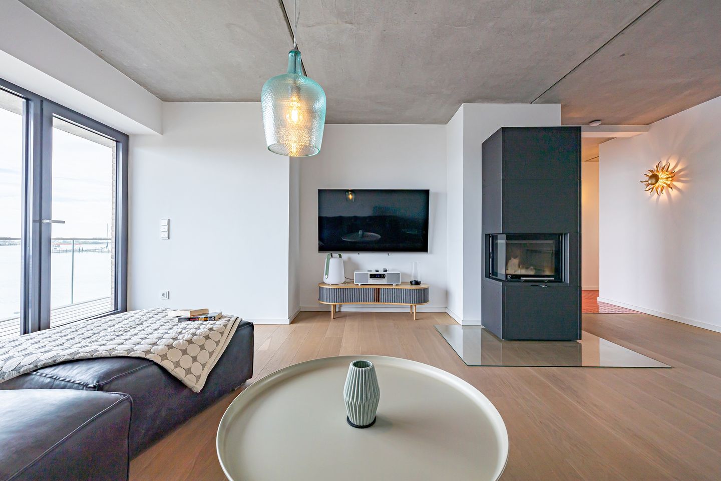 Die Ferienwohnung "Rooftop Garden 1" in Olpenitz begrüßt Sie in toller Lage direkt an der Hafenpromenade von Olpenitz und überzeugt auf ganzer Linie mit ihrer modernen Ausstattung und exklusiven Details. Mit einer Wohnfläche von 103 m² bieten sich ideale Voraussetzungen für bis zu 4 Personen und 2 Hunde, die Wert auf Komfort, Entspannung und ein stilvolles Interieur legen. Die Wohnung befindet sich im 1. Stock eines modernen Gebäudes und ist bequem über einen Aufzug erreichbar. Der offen gestaltete Wohn- und Essbereich bildet das Herzstück der Wohnung. Die moderne Küche ist zum Wohnzimmer hin offen gehalten und überzeugt durch eine umfassende Ausstattung: Neben einem Induktionsherd (2 Platten), Toaster und Spülmaschine finden Sie hier auch eine Espresso- und eine Kaffeemaschine, einen Sandwichmaker, Mixer und Pürierstab sowie sämtliche Küchenutensilien, Geschirr und Besteck für ein komfortables Kocherlebnis. Für gemütliche Stunden sorgt ein Kaminofen und eine Smart-TV im Wohnzimmer. Insgesamt verfügt die Ferienwohnung über zwei komfortable Schlafzimmer mit hochwertigen Möbeln. Bis zu vier Personen finden hier angenehme Schlafmöglichkeiten. Beide Schlafzimmer verfügen über je ein Doppelbett (180x200cm), einen Kleiderschrank, Verdunkelungsmöglichkeiten, Insektenschutzgitter sowie je ein Smart-TV. Für Familien stehen ein Kinderhochstuhl und ein Babybett bereit. Im Tageslicht-Bad erwartet Sie eine bodengleiche Dusche, ein Föhn sowie ein Kosmetikspiegel, zudem ist ein separates Gäste-WC vorhanden. Wellness-Liebhaber profitieren von einer finnischen Sauna, die ausschließlich exklusiv für Sie zur Verfügung steht. Für einen angenehmen Aufenthalt sorgen darüber hinaus WLAN, ein Soundsystem, Fußbodenheizung, Waschmaschine, Trockner sowie Bügeleisen und -brett. Besonders hervorzuheben ist der beeindruckende Meerblick, den Sie von Ihrem privaten Balkon genießen können. Zum Außenbereich zählt ebenfalls die gemeinschaftliche Dachterrasse, die mit Gartenmöbeln und einem Strandkorb ausgestattet ist, sodass Sie entspannte Stunden im Freien verbringen und das maritime Flair auf sich wirken lassen können. Ein Gasgrill steht zudem zur gemeinschaftlichen Nutzung zur Verfügung, um gesellige Grillabende zu erleben. Es kann außerdem der gemeinschaftliche, abschließbare Fahrradschuppen genutzt werden. Der zur Wohnung gehörende Privatparkplatz vor der Unterkunft sowie ein Carport und eine Elektroauto-Ladestation stehen Ihnen zur Verfügung. Ferner erreichen Sie Einkaufsmöglichkeiten und Restaurants in unmittelbarer Umgebung. Die Vielfalt an Freizeitgestaltungsmöglichkeiten in der Umgebung ist bemerkenswert: Angeln, Segeln, Schwimmen, Radfahren, Nordic Walking, Wasserski und zahlreiche weitere Aktivitäten lassen keine Wünsche offen. Genießen Sie in dieser exklusiven Ferienwohnung einen angenehmen Aufenthalt in erstklassiger Lage mit umfassender, moderner Ausstattung und maritimem Ambiente.