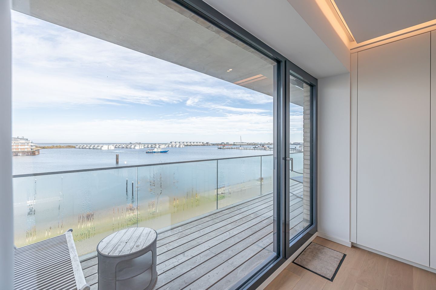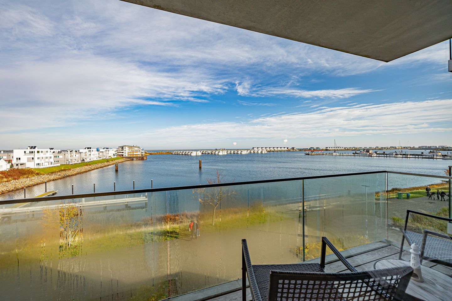 Die Ferienwohnung "Rooftop Garden 2" in Olpenitz begrüßt Sie in toller Lage direkt an der Hafenpromenade von Olpenitz und überzeugt auf ganzer Linie mit ihrer modernen Ausstattung und exklusiven Details. Mit einer Wohnfläche von 103 m² bieten sich ideale Voraussetzungen für bis zu 4 Personen und 2 Hunde, die Wert auf Komfort, Entspannung und ein stilvolles Interieur legen. Die Wohnung befindet sich im 1. Stock eines modernen Gebäudes und ist bequem über einen Aufzug erreichbar. Der offen gestaltete Wohn- und Essbereich bildet das Herzstück der Wohnung. Die moderne Küche ist zum Wohnzimmer hin offen gehalten und überzeugt durch eine umfassende Ausstattung: Neben einem Induktionsherd (2 Platten), Toaster und Spülmaschine finden Sie hier auch eine Espresso- und eine Kaffeemaschine, einen Sandwichmaker, Mixer und Pürierstab sowie sämtliche Küchenutensilien, Geschirr und Besteck für ein komfortables Kocherlebnis. Für gemütliche Stunden sorgt ein Kaminofen und eine Smart-TV im Wohnzimmer. Insgesamt verfügt die Ferienwohnung über zwei komfortable Schlafzimmer mit hochwertigen Möbeln. Bis zu vier Personen finden hier angenehme Schlafmöglichkeiten. Beide Schlafzimmer verfügen über je ein Doppelbett (180x200cm), einen Kleiderschrank, Verdunkelungsmöglichkeiten, Insektenschutzgitter sowie je ein Smart-TV. Für Familien stehen ein Kinderhochstuhl und ein Babybett bereit. Im Tageslicht-Bad erwartet Sie eine bodengleiche Dusche, ein Föhn sowie ein Kosmetikspiegel, zudem ist ein separates Gäste-WC vorhanden. Wellness-Liebhaber profitieren von einer finnischen Sauna, die ausschließlich exklusiv für Sie zur Verfügung steht. Für einen angenehmen Aufenthalt sorgen darüber hinaus WLAN, ein Soundsystem, Fußbodenheizung, Waschmaschine, Trockner sowie Bügeleisen und -brett. Besonders hervorzuheben ist der beeindruckende Meerblick, den Sie von Ihrem privaten Balkon genießen können. Zum Außenbereich zählt ebenfalls die gemeinschaftliche Dachterrasse, die mit Gartenmöbeln und einem Strandkorb ausgestattet ist, sodass Sie entspannte Stunden im Freien verbringen und das maritime Flair auf sich wirken lassen können. Ein Gasgrill steht zudem zur gemeinschaftlichen Nutzung zur Verfügung, um gesellige Grillabende zu erleben. Es kann außerdem der gemeinschaftliche, abschließbare Fahrradschuppen genutzt werden. Der zur Wohnung gehörende Privatparkplatz vor der Unterkunft sowie ein Carport und eine Elektroauto-Ladestation stehen Ihnen zur Verfügung. Ferner erreichen Sie Einkaufsmöglichkeiten und Restaurants in unmittelbarer Umgebung. Die Vielfalt an Freizeitgestaltungsmöglichkeiten in der Umgebung ist bemerkenswert: Angeln, Segeln, Schwimmen, Radfahren, Nordic Walking, Wasserski und zahlreiche weitere Aktivitäten lassen keine Wünsche offen. Genießen Sie in dieser exklusiven Ferienwohnung einen angenehmen Aufenthalt in erstklassiger Lage mit umfassender, moderner Ausstattung und maritimem Ambiente.