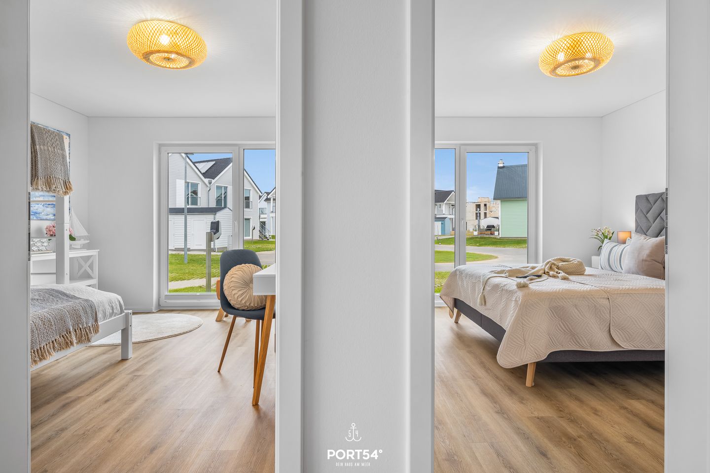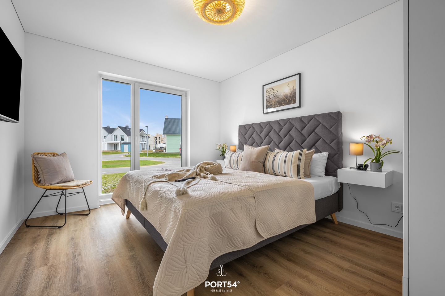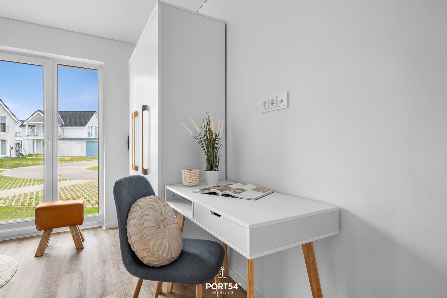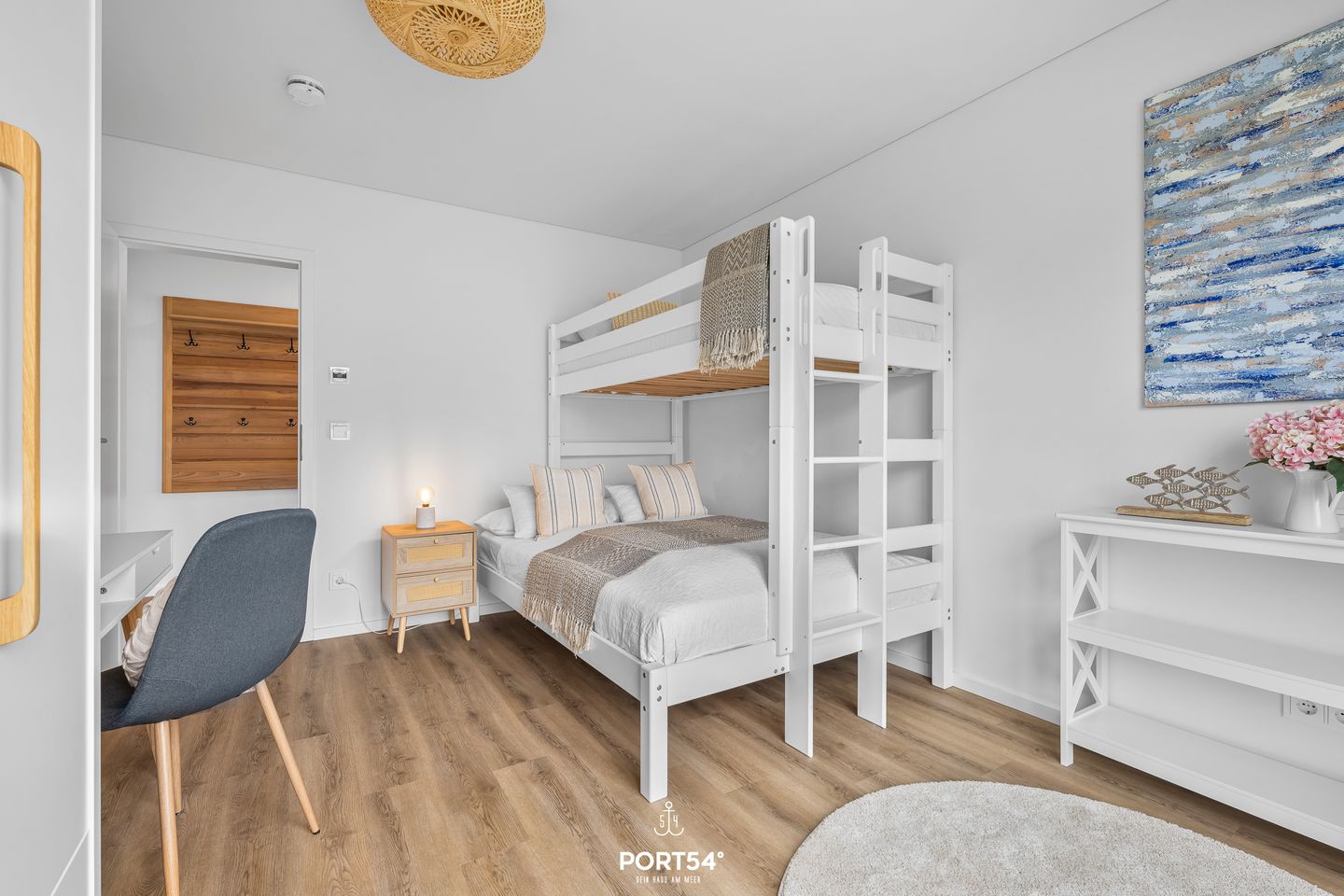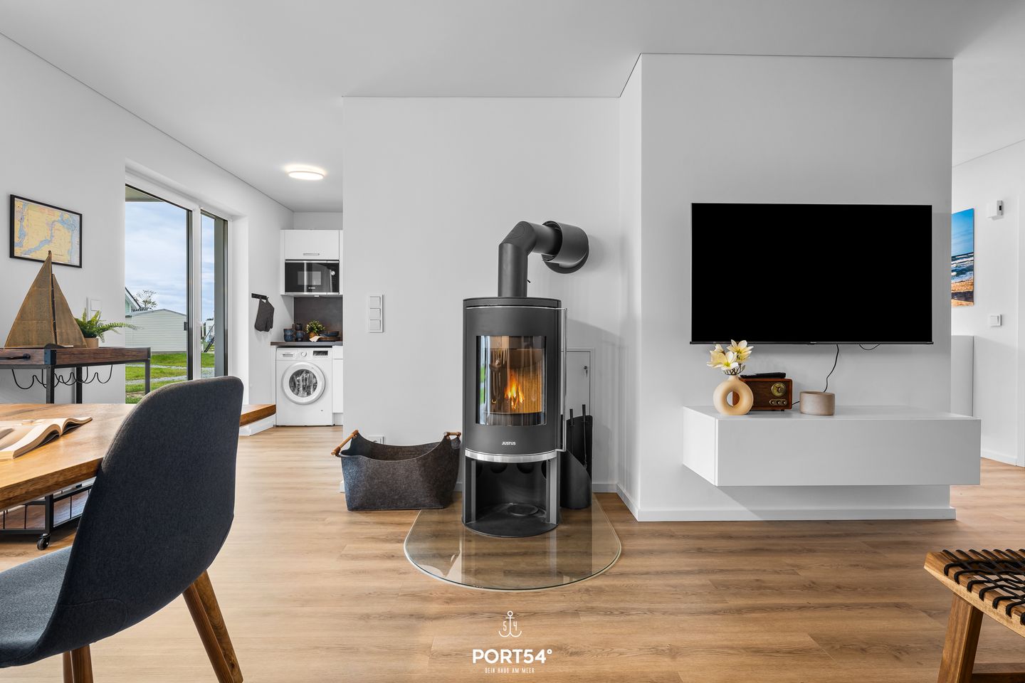 Die Ferienwohnung "Wellenkrone" liegt im Erdgeschoss und bietet Ihnen einen angenehmen und entspannten Urlaub. Neben zwei Schlafzimmern bietet die Wohnung ein Wellnessbad für Genießer. Entspannen Sie sich nach einer langen Fahrradtour in der Infrarot-Sauna. Ein Schlafzimmer ist mit einem Doppelbett (180×200cm) ausgestattet, das zweite Schlafzimmer bietet zusätzlich zu einem Doppelbett (140×200cm) ein Einzelbett (90×200cm). An nicht so schönen Tagen bietet der Kamin mollige Wärme, entspannen Sie einfach mal und lassen die Seele baumeln. Ebenso können Sie Ihre Zeit mit der gestellten Spielesammlung verbringen und viel Spaß mit der Familie haben. Die offene Küche mit großzügigem Essbereich lädt zum Kochen und Genießen ein. Von der Terrasse aus können Sie das Grün voll und ganz genießen. Legen Sie im hauseigenem Strandkorb die Füße hoch und genießen Sie Ihren Urlaub und die Umgebung. Lassen Sie den Tag bei einem entspannten Grillabend ausklingen. Mitgebrachte Fahrräder können Sie im abschließbaren Fahrradschuppen unterstellen. Es gibt eine Ladestation für E-Bikes und E-Autos.